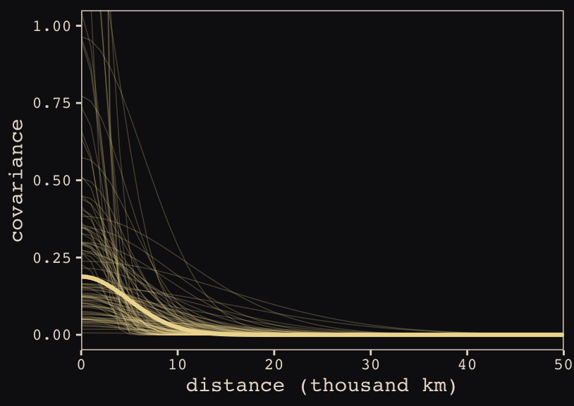 The machinery that makes such complex varying effects possible will be used later in the chapter to extend the varying effects strategy to more subtle model types, including the use of continuous categories, using Gaussian process. (p. 388)