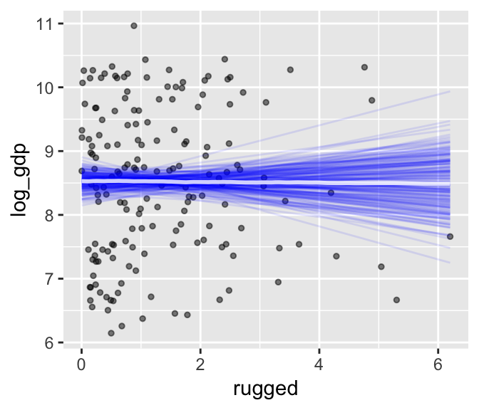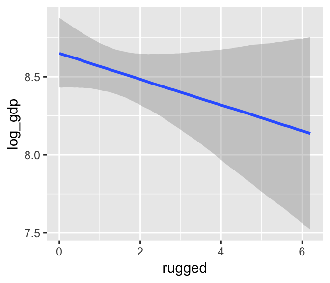 rm(rugged)We’ll continue to use tidyverse-style syntax to wrangle the data.