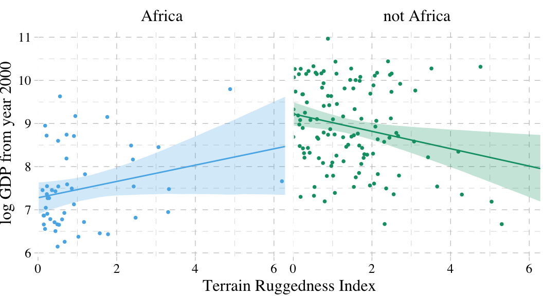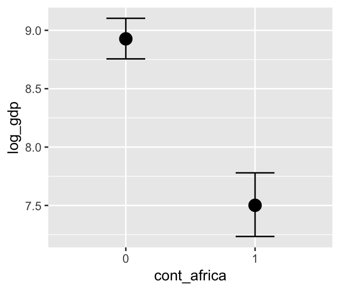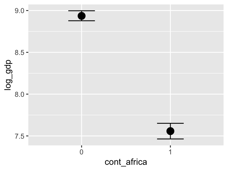 mutate(cont_africa = ifelse(cont_africa == 1, "Africa", "not Africa"))Behold our Figure 7.3.