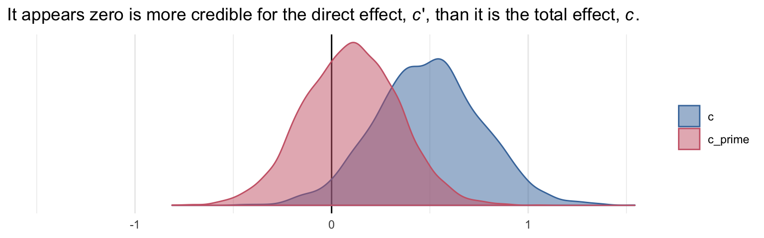 It’ll take a bit of data wrangling to rename our model parameters to the \(a\), \(b\)… configuration. We’ll compute the indirect effects and \(c\), too.