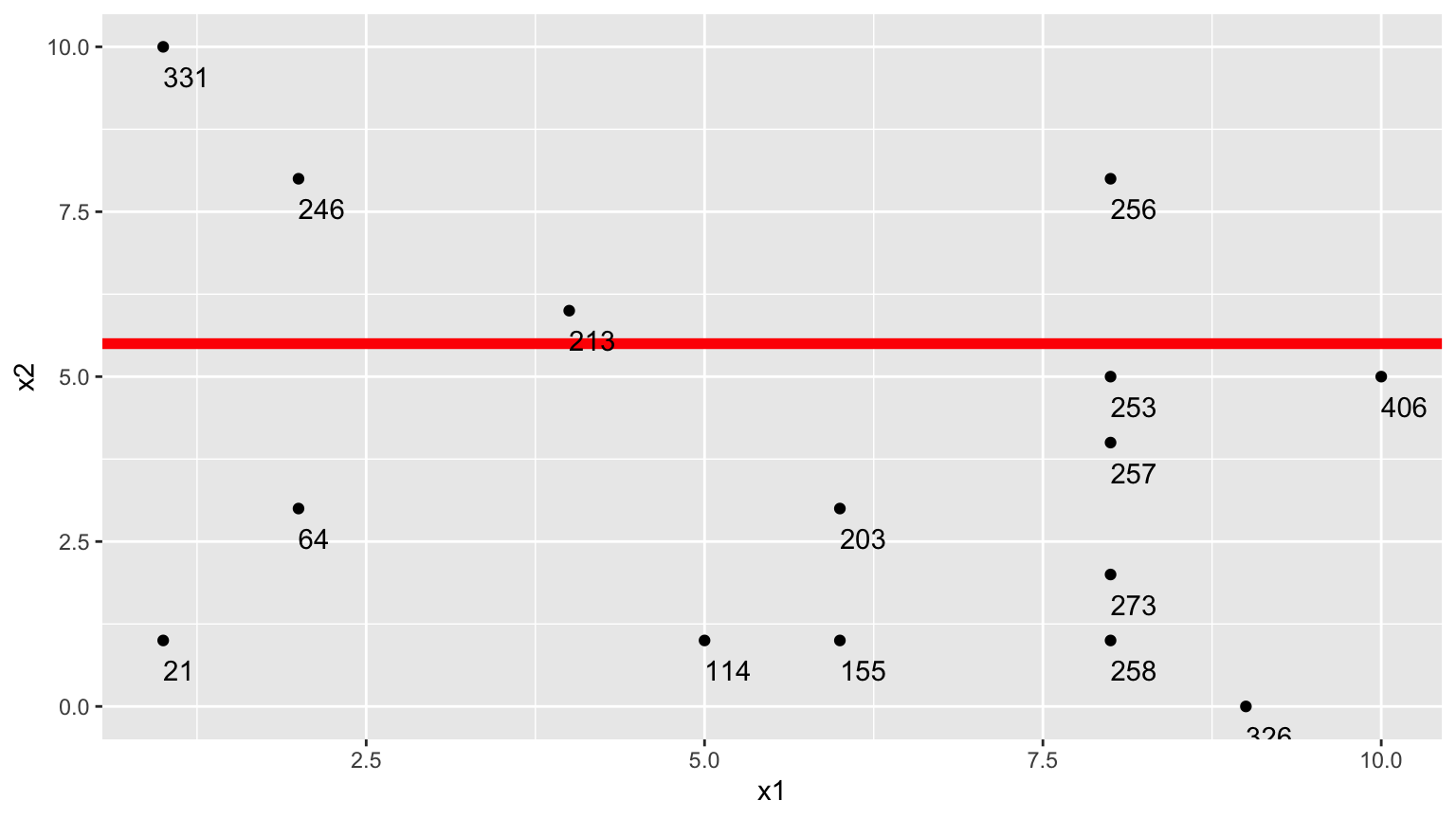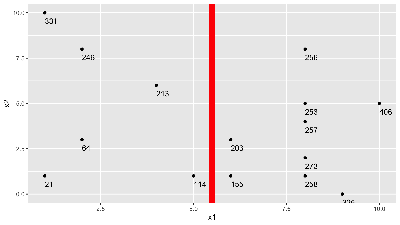 9.2.5 One Possible Split (\(x_1 < 5.5\))