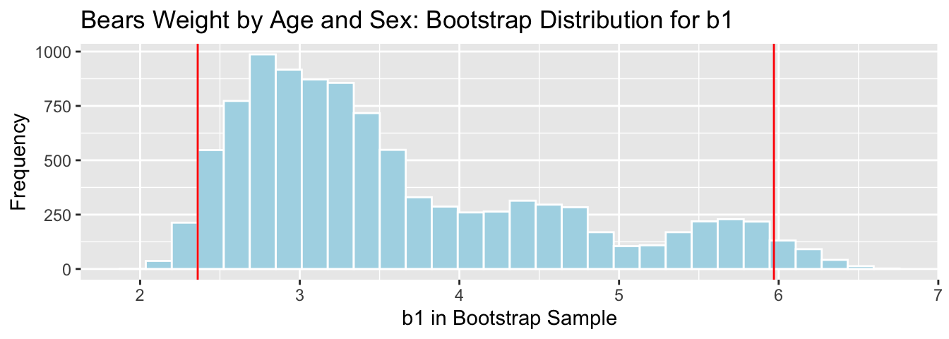3.7.9 Bootstrap SE CI for \(b_1\) in Bears Model