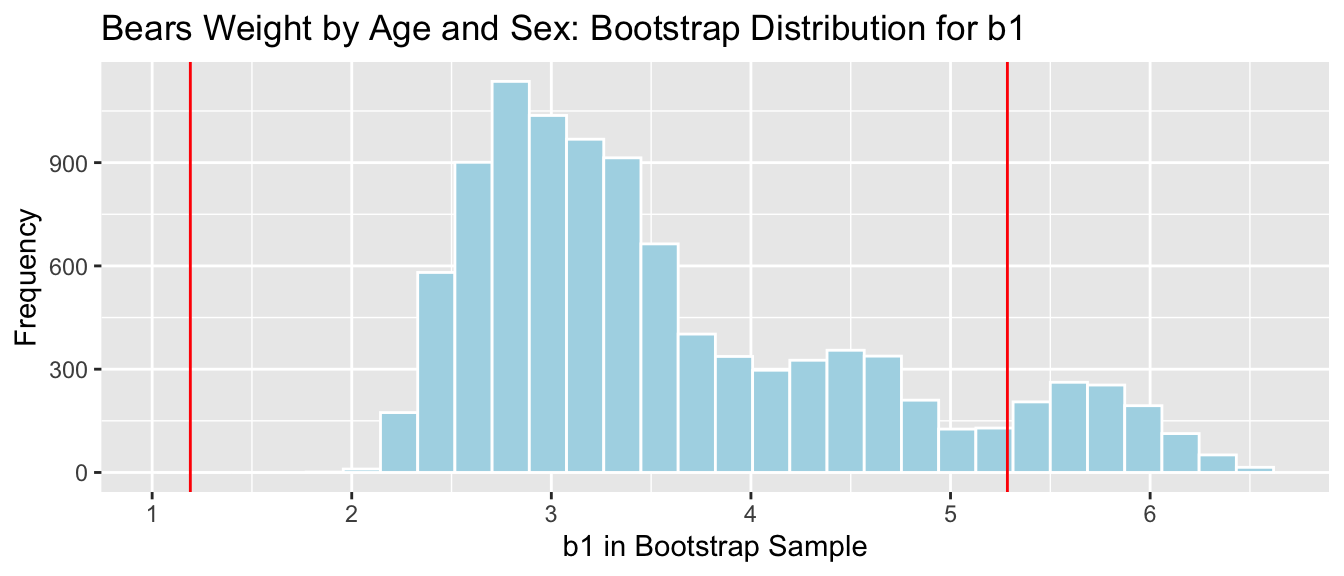 3.7.8 Bootstrap SE CI for \(b_1\) in Bears Model