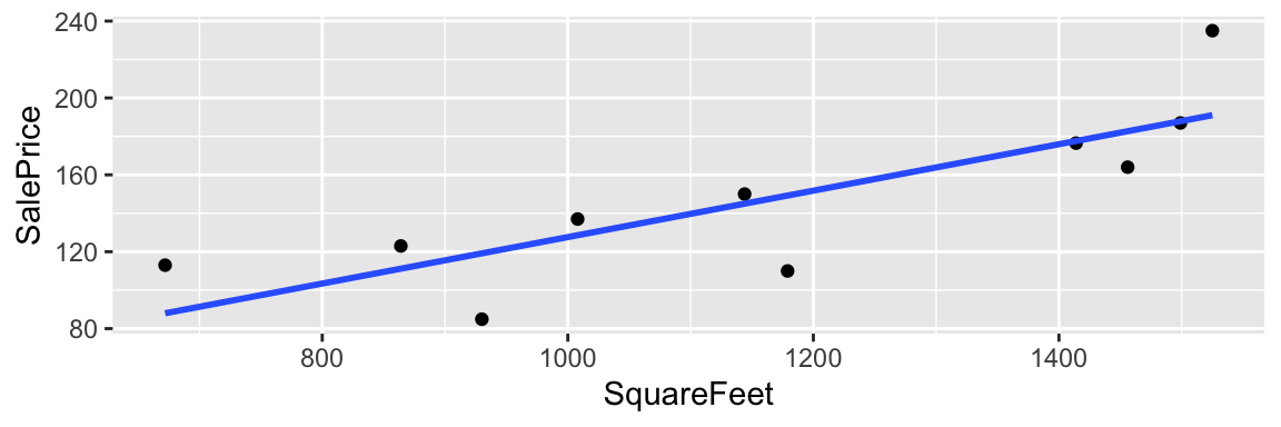 We’ll work with a set of 10 houses sold in Ames, IA between 2006 and 2010.