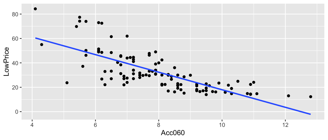 \(b_1 = 0.27915= 0.6965 - 0.4245\) is equal to the difference in mean mercury levels between Northern and Southern lakes. (We’ve already seen that for categorical variables, the least-squares estimate is the mean, so this makes sense.)