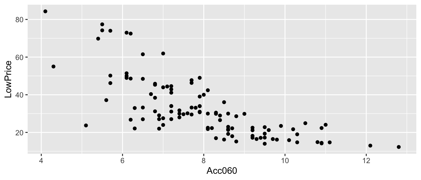 ## lm(formula = LowPrice ~ Acc060, data = Cars2015)