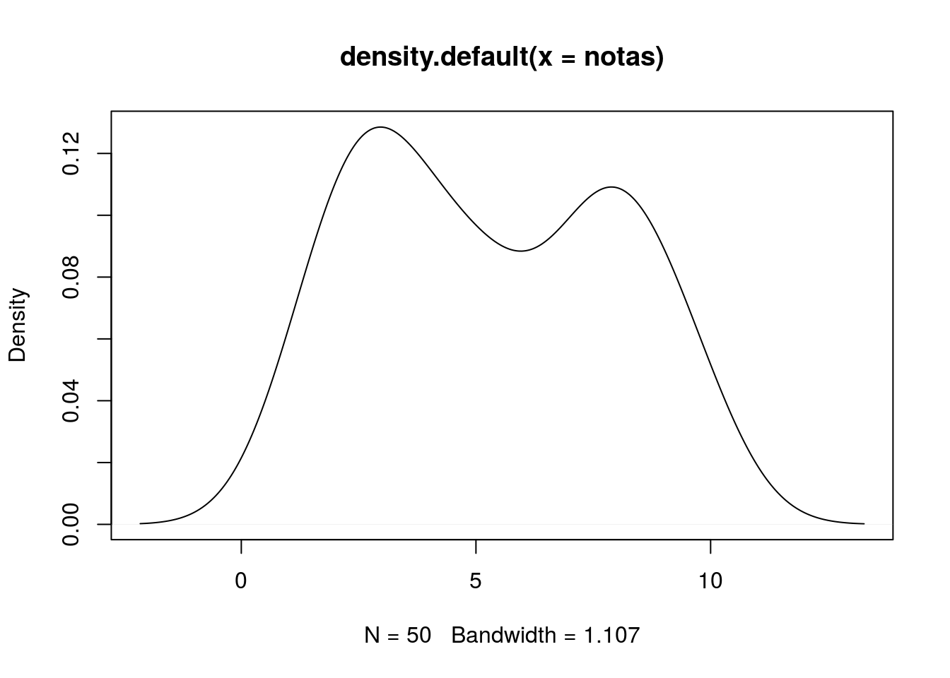## Data: notas (50 obs.); Bandwidth 'bw' = 1.107