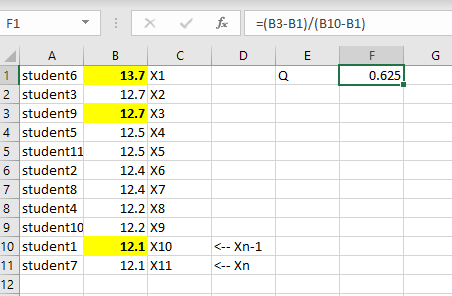 \(Q=\frac{x_{2}−x_{1}}{x_{n}−x_{1}} = 0.5\)