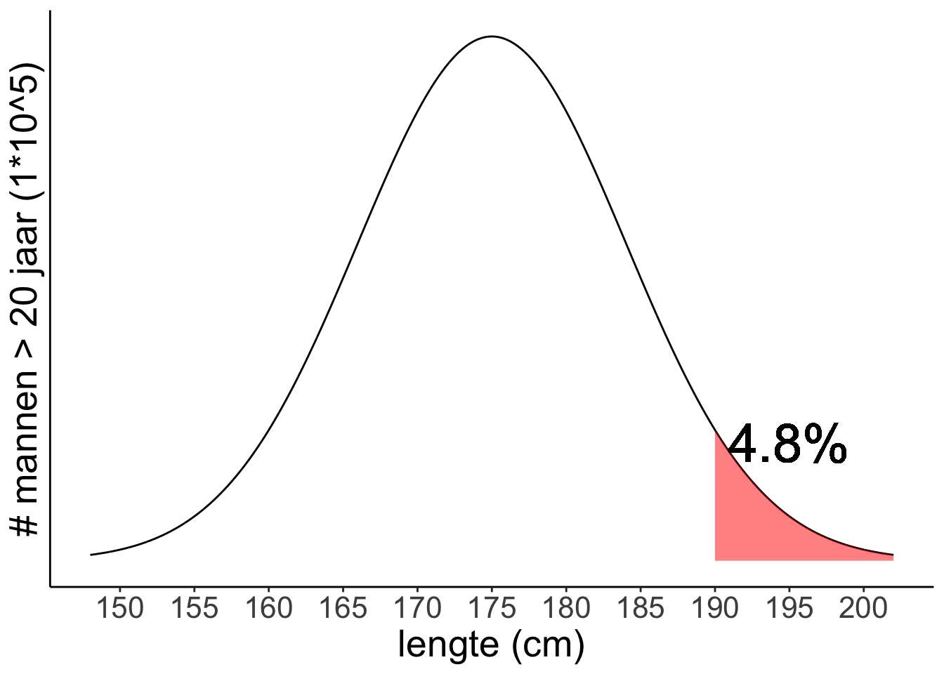In dit figuur hadden we bijvoorbeel normaal verdeelde data van de lengtes van Nederlandse mannen boven de 20, met: