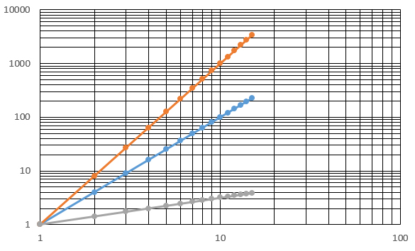 =POWER(in het Nederlands=Macht). - Maak een grafiek (scatter plot with smooth lines) van de gegeven functies.