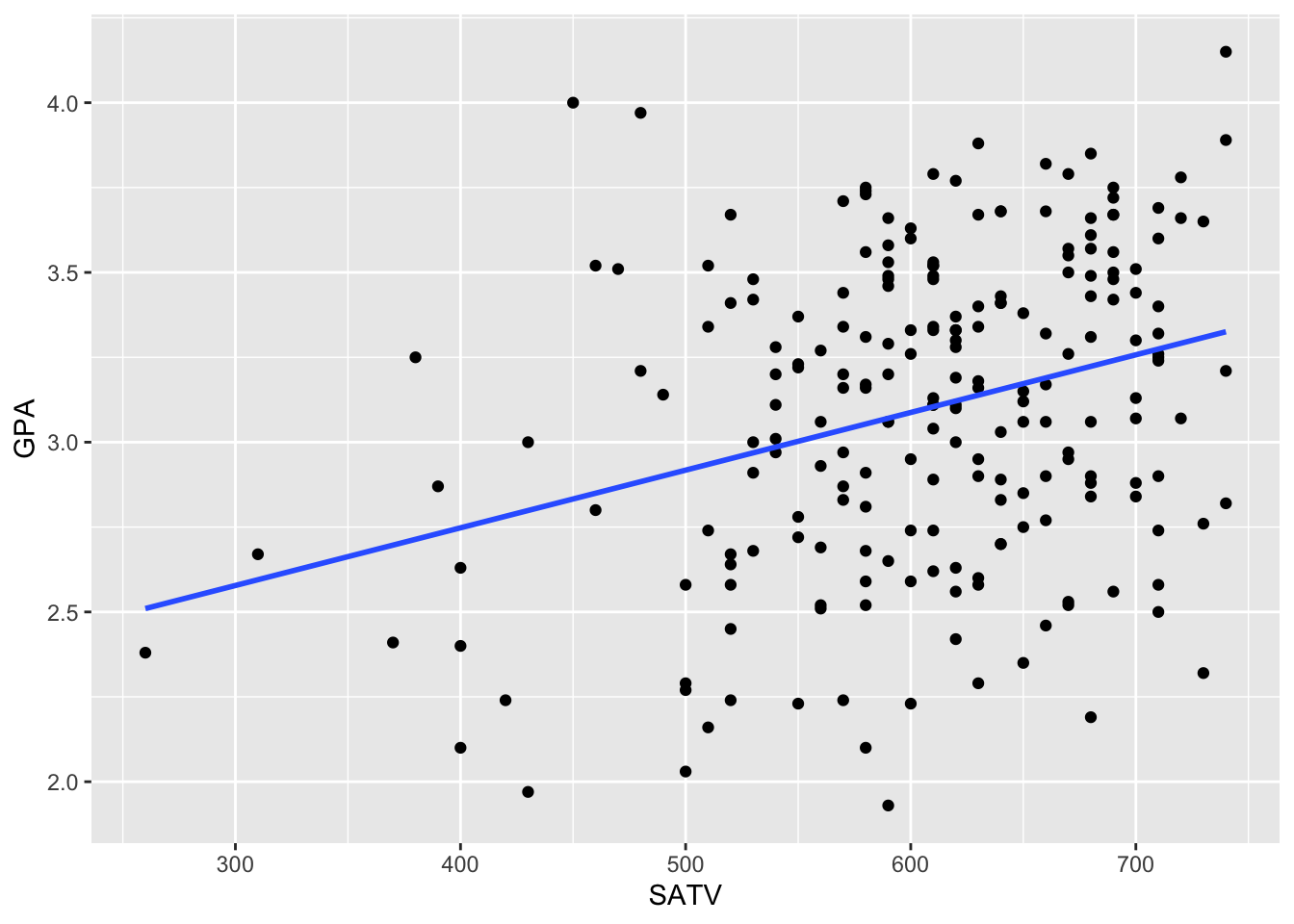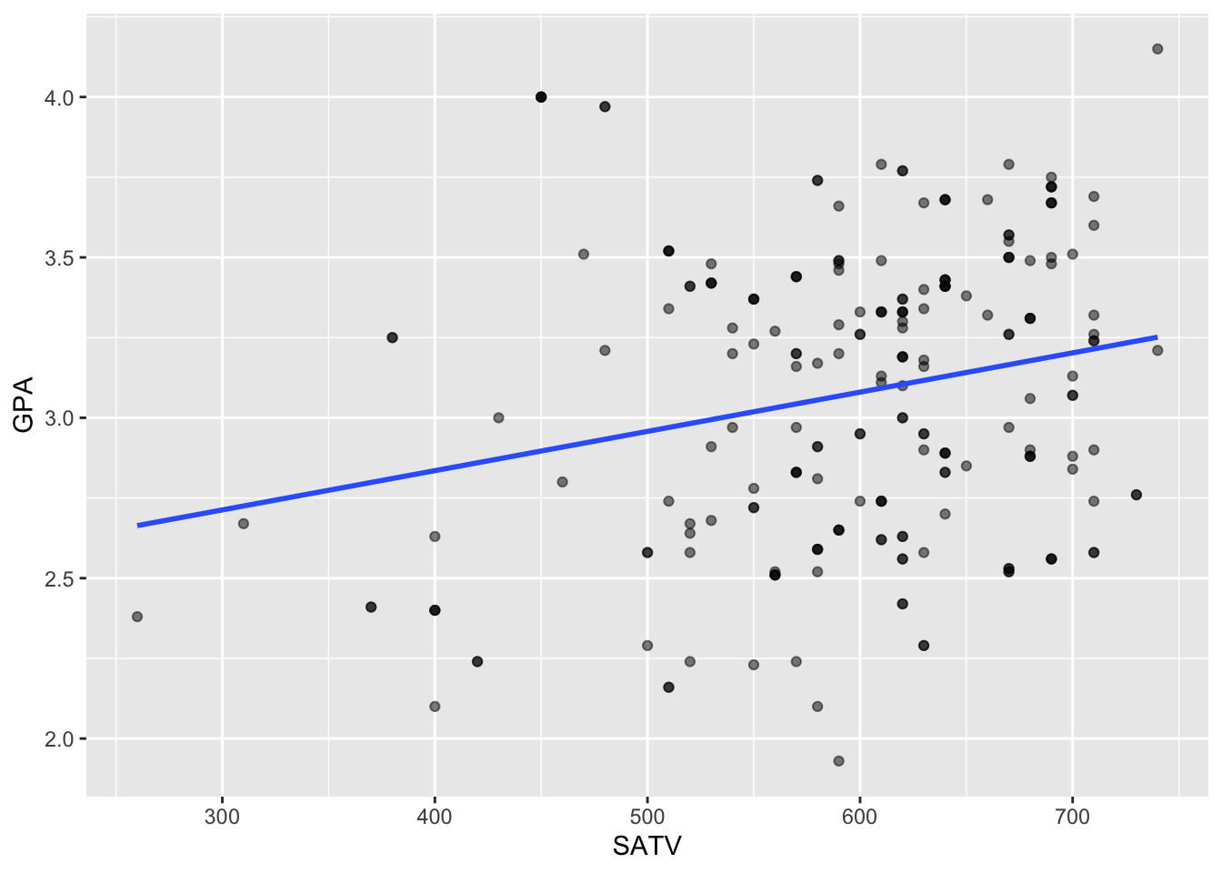 aes(x = SATV, y = GPA)) +