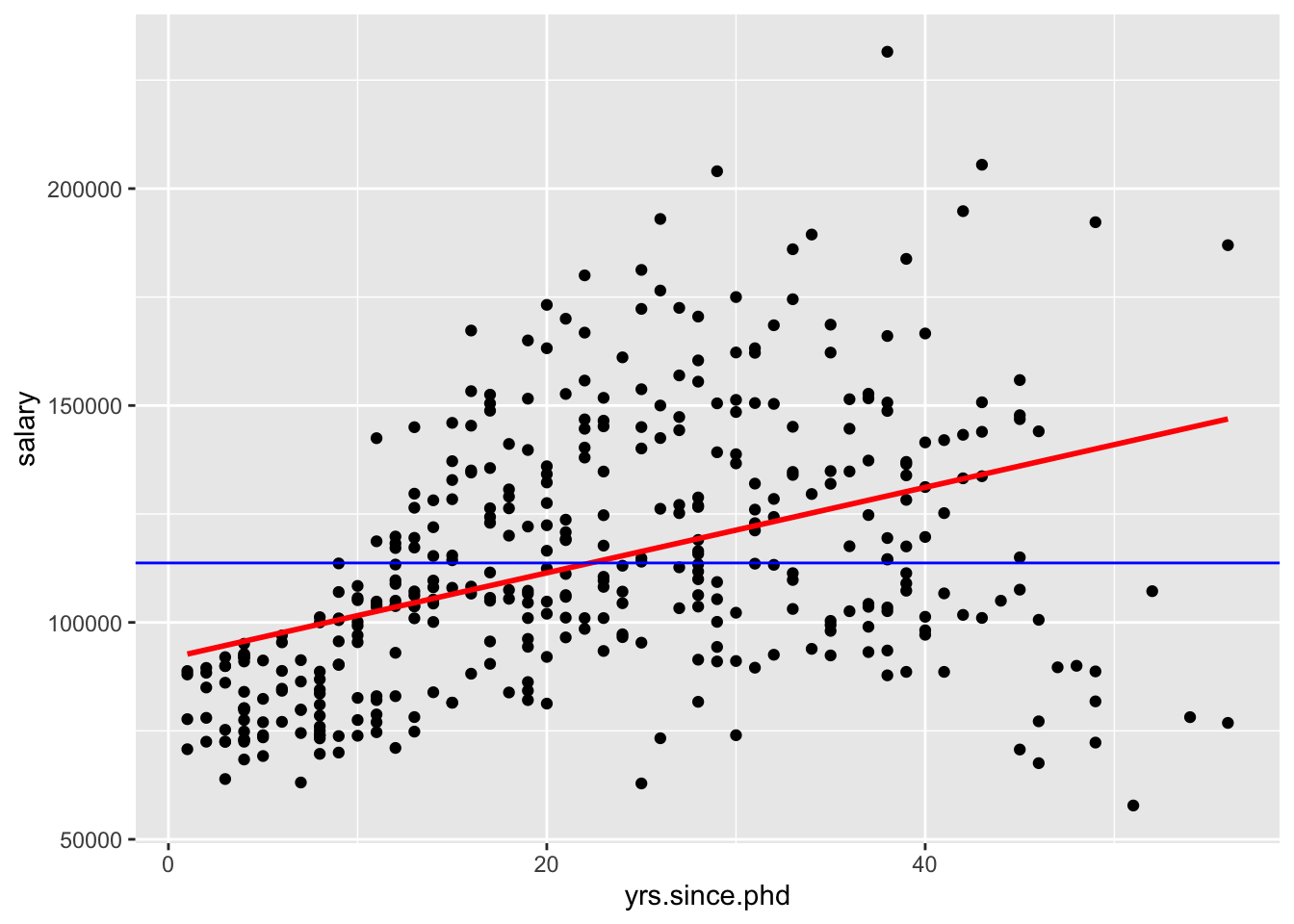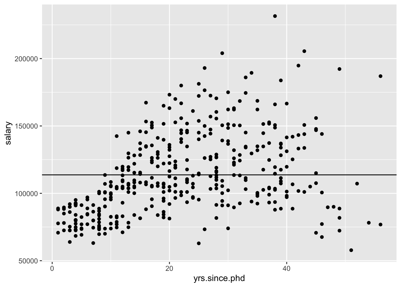 ## lm(formula = salary ~ yrs.since.phd, data = Salaries)