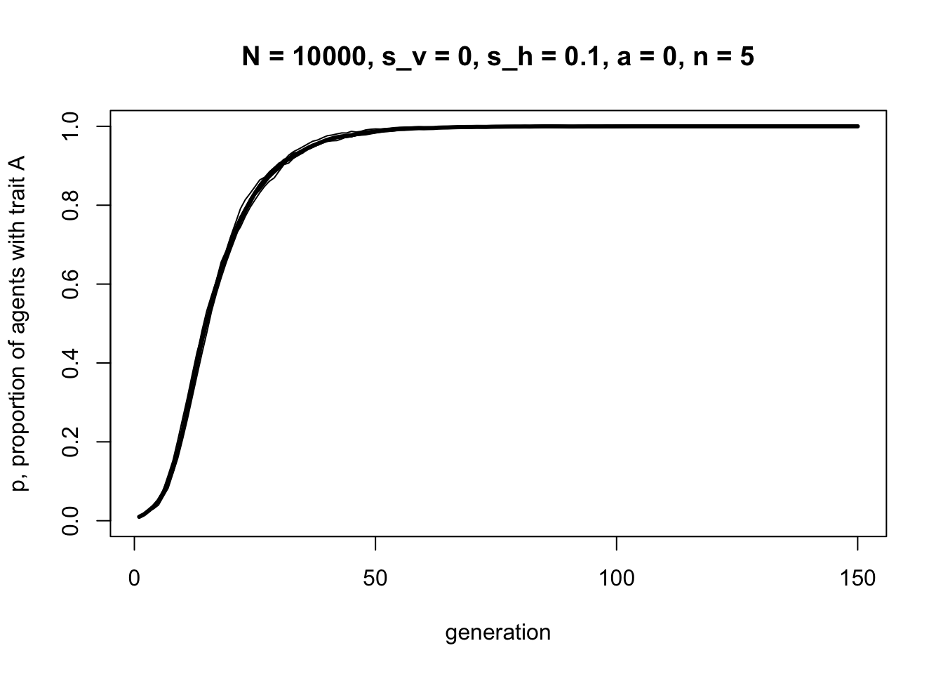 ylab = "p, proportion of agents with trait A",