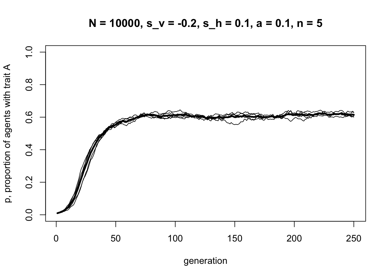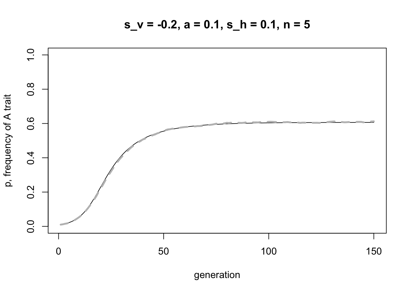 ylab = "p, frequency of A trait",