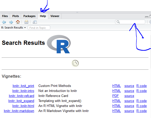 To get help about a particular package or function you can access the help pane in RStudio and type its name in the search box.