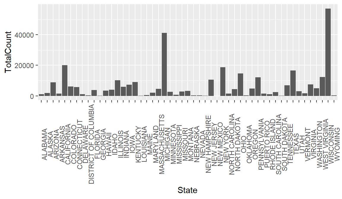 #plot the counts for each state in a bar graph in the year 1963, year vaccine was introduced.
