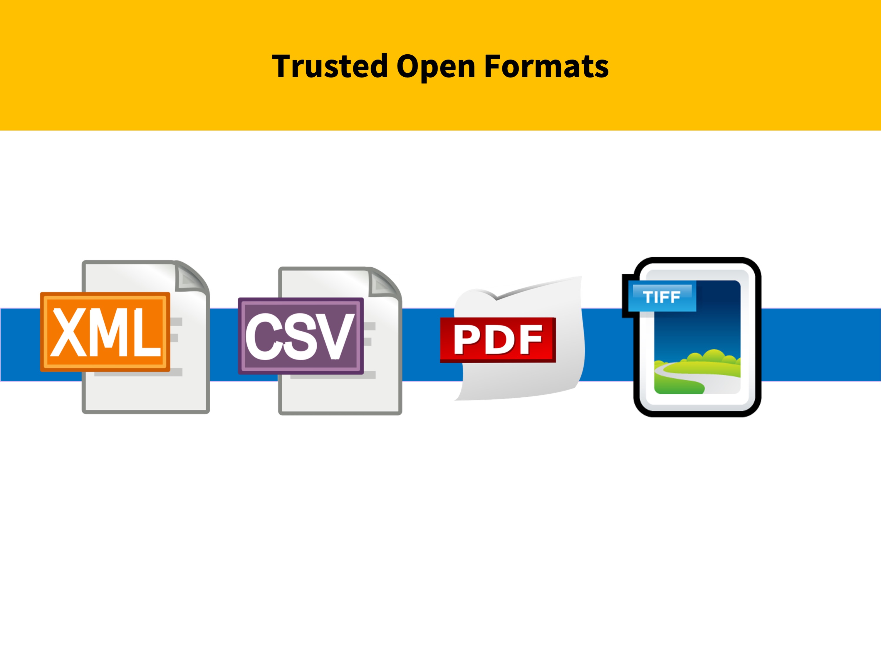 We have talked about open software formats but what are they? Here are four trusted open formats for long-term storage. These would cover preservation of nearly all data you’d encounter or be working with. They are: