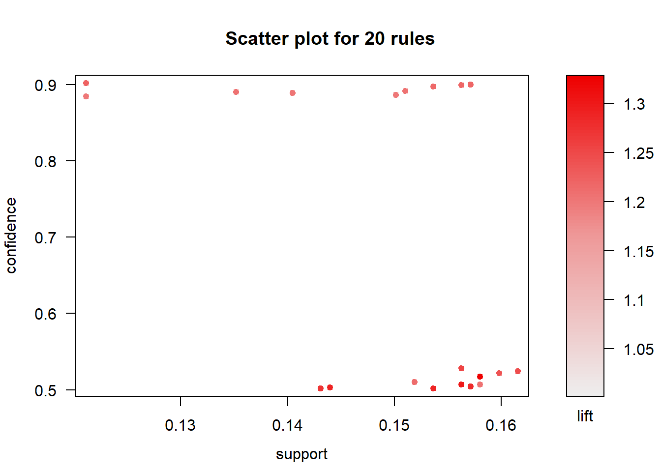 - Soporte: Una medida de en qué porcentaje el patrón encontrado aparece respecto al tamaño del dataset.