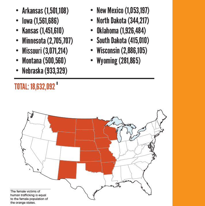 To express the magnitude of a number like 18.9 million, this equates to every female living in the following states as a victim of the sex trade industry: