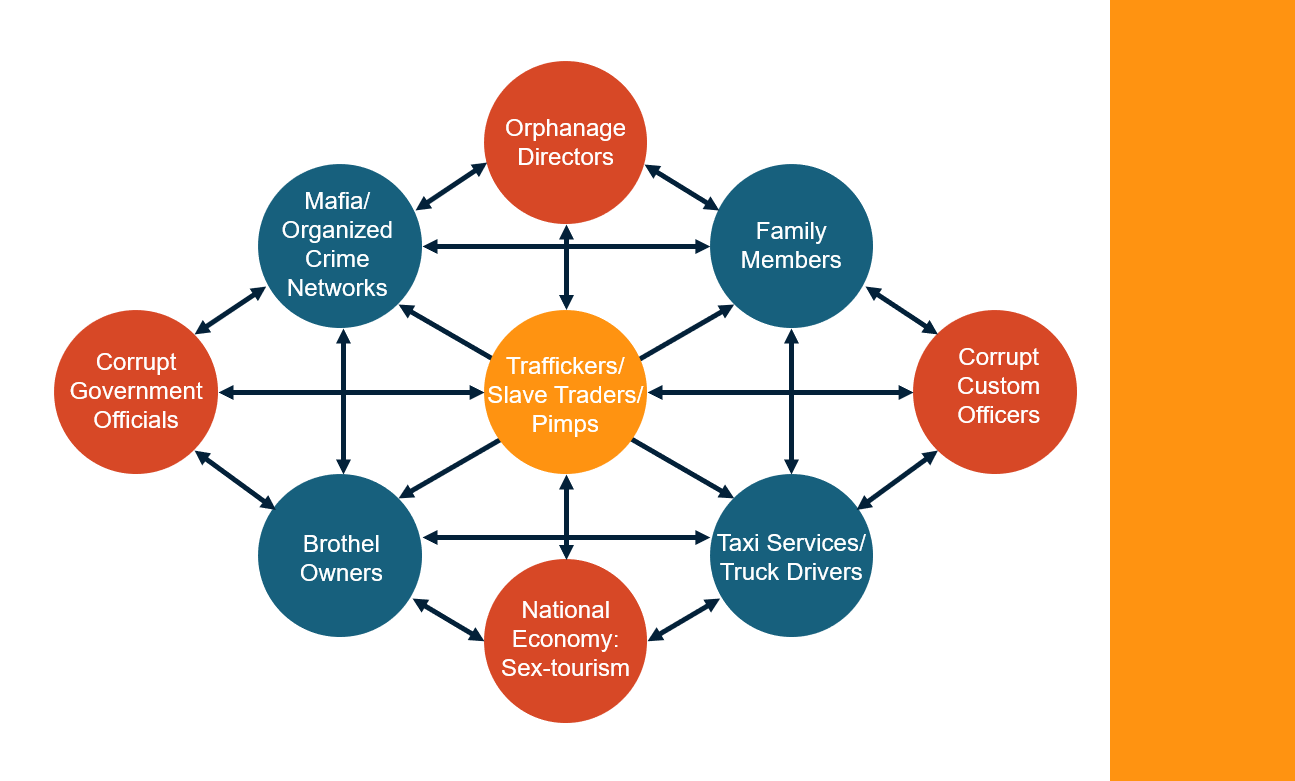 Below is a diagram on the:Infrastructure, Outcomes, and Feedback Loop that perpetuate the cycle of sex slavery: