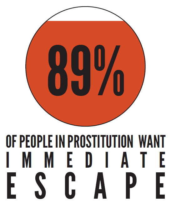 • A 9-country study that interviewed over 800 prostituted individuals found that 89% of people in prostitution wanted immediate “escape.” Not a part-time job - “escape”. 2
