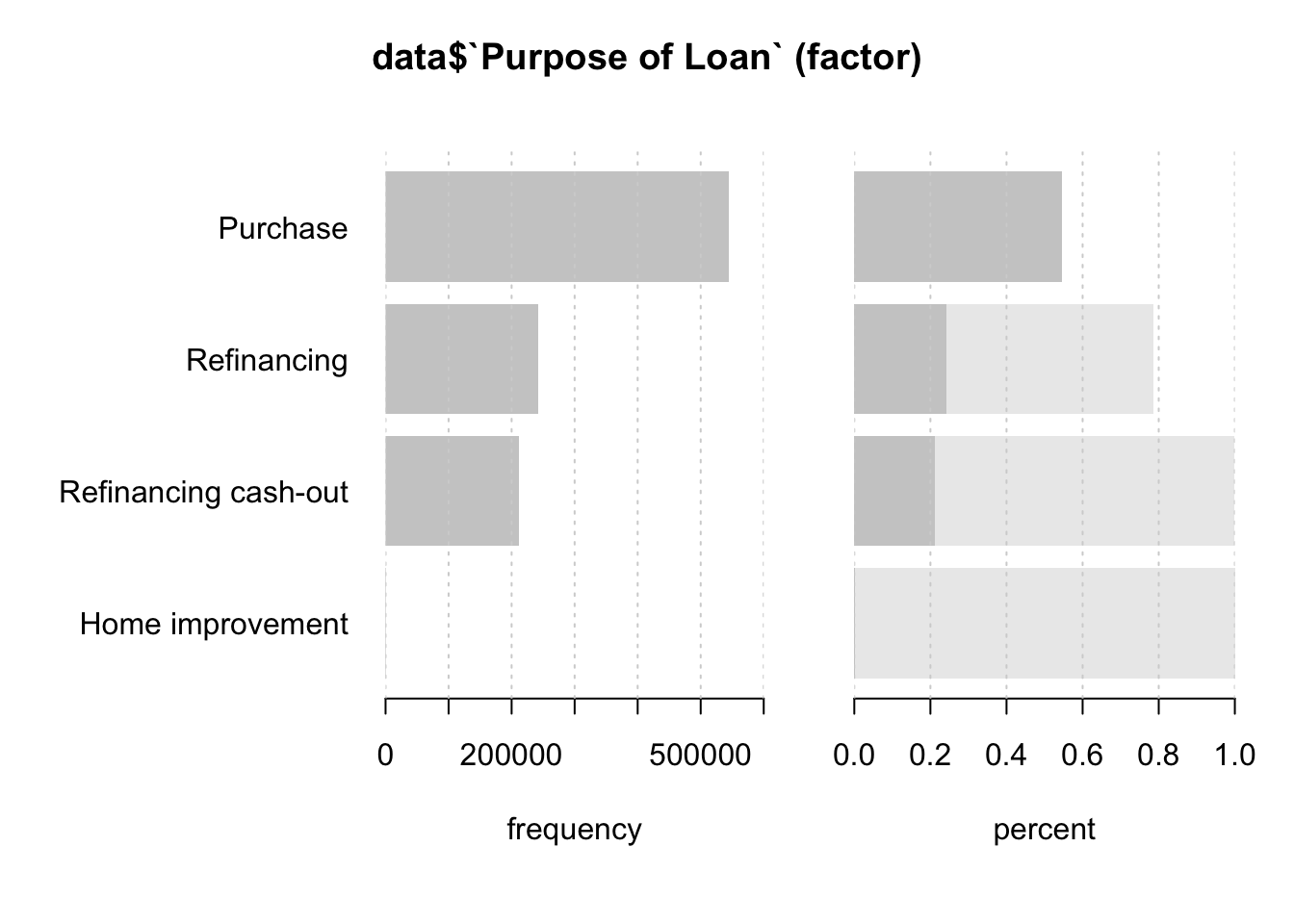 levels(data$`Purpose of Loan`) <- c("Purchase", "Refinancing", "Home improvement", "Refinancing cash-out")