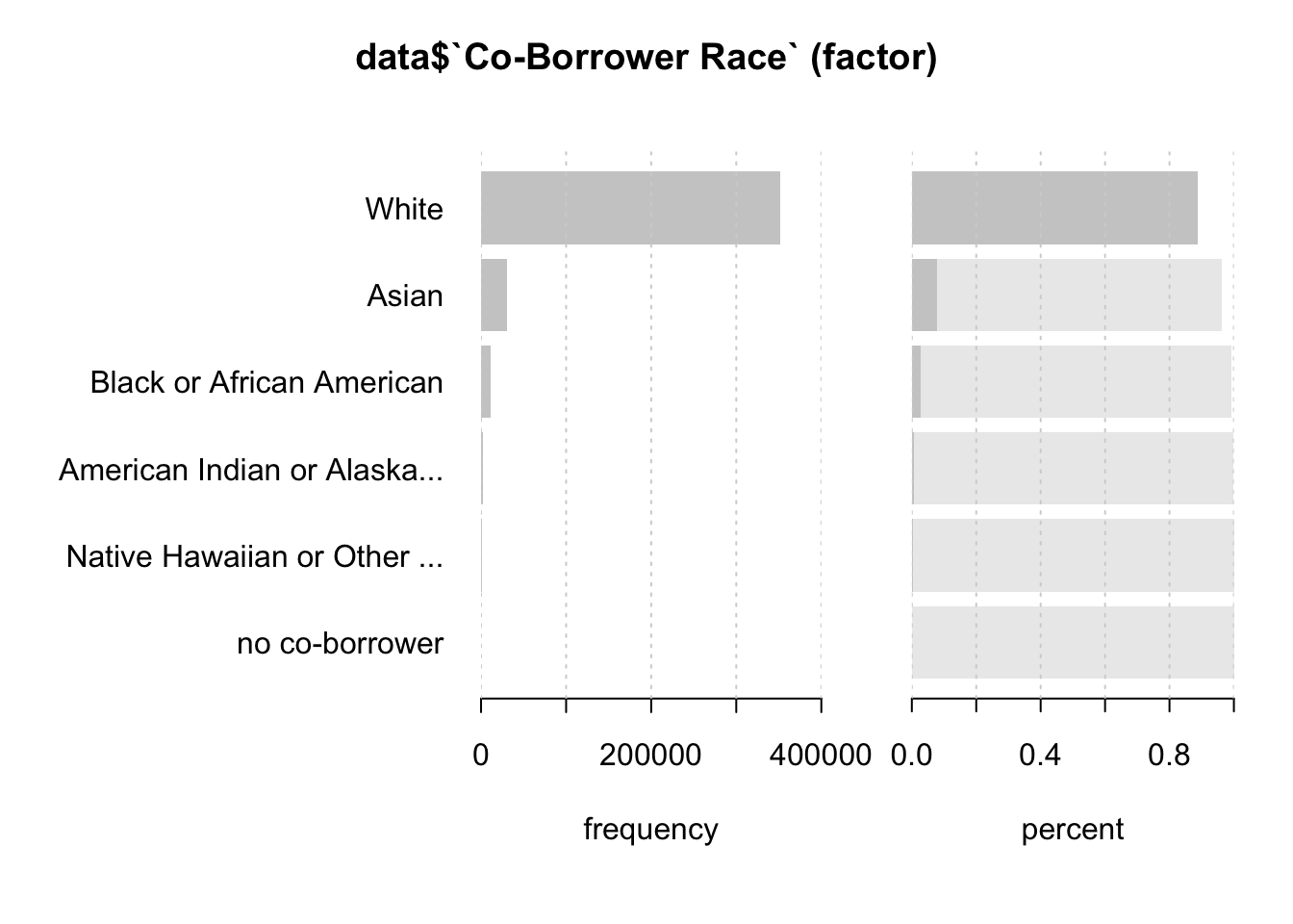 levels(data$`Co-Borrower Race1`) <- c("American Indian or Alaska Native", "Asian", "Black or African American",