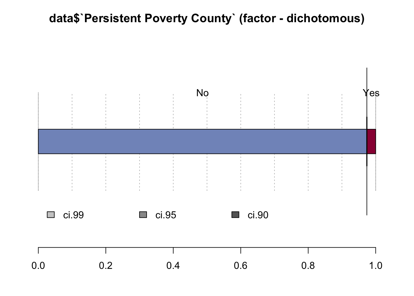 data <- data %>% select(-c("Rural Census Tract", "Lower Mississippi Delta County", "Middle Appalachia County"))Desc(data$`Persistent Poverty County`)## ----------------------------------------------------------------------------------------------------------------------