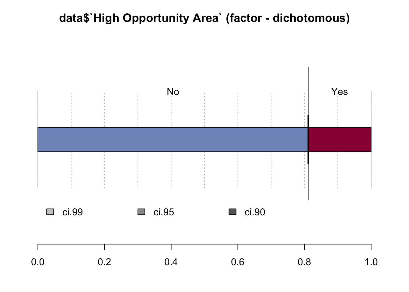 data <- data %>% select(-`Persistent Poverty County`)Desc(data$`High Opportunity Area`)## ----------------------------------------------------------------------------------------------------------------------