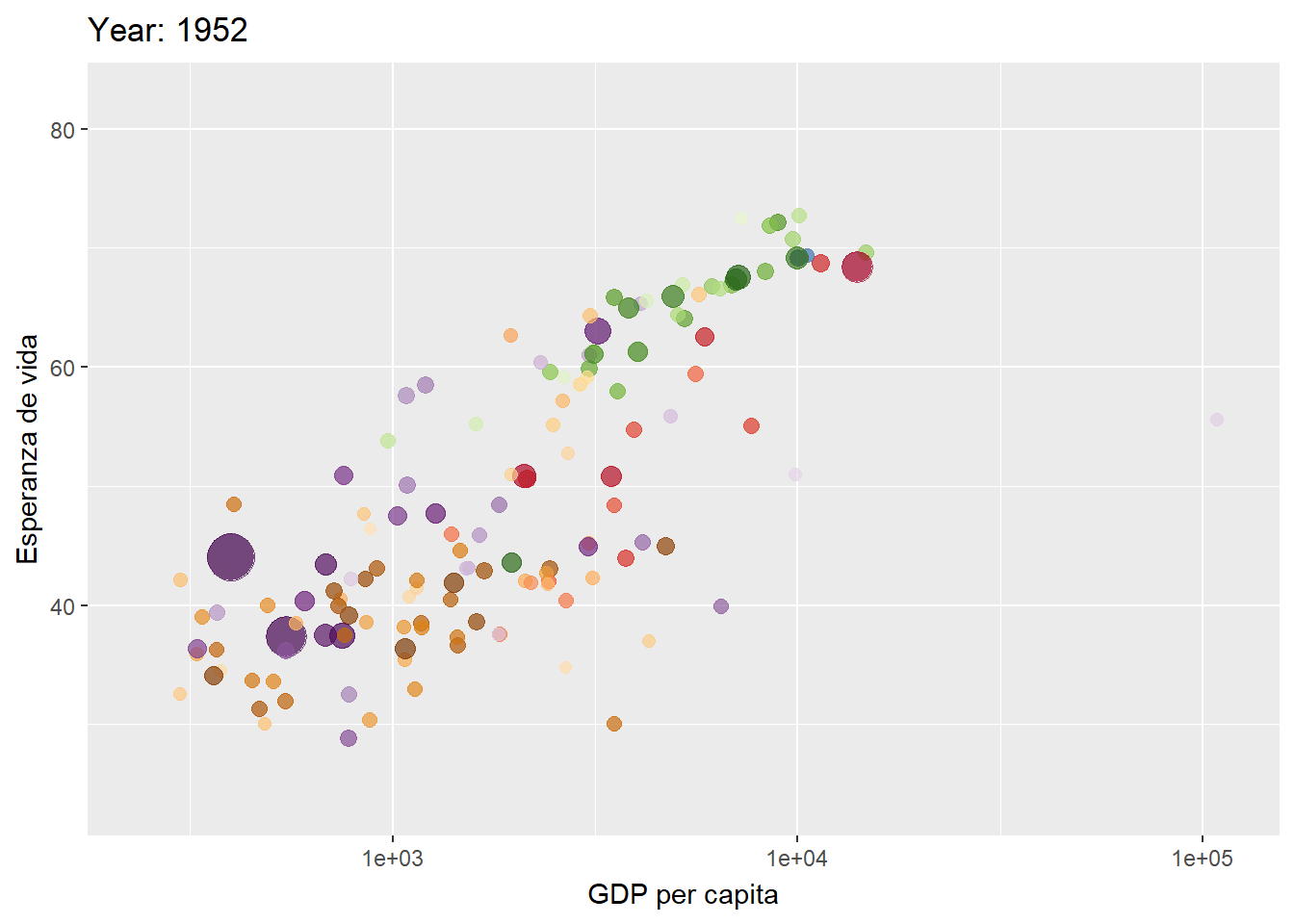 # Podemos guardar el gráfico animado como gif: anim_save(nombre.gif)Veamos un último ejemplo en el que utilizaremos el paquete gifski.