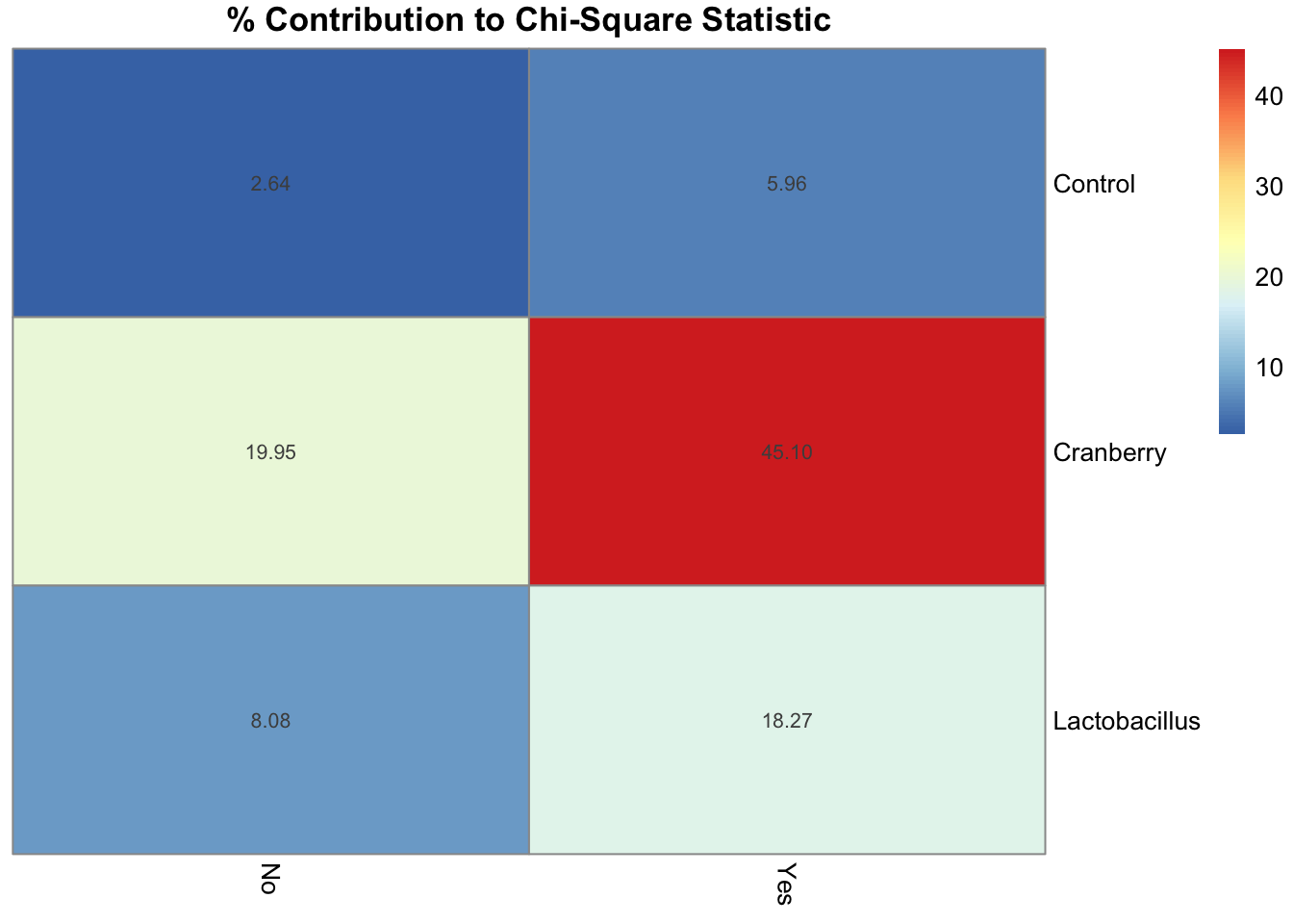 • The Cranberry group had fewer infections than expected and contributes most to the chi-square statistic.