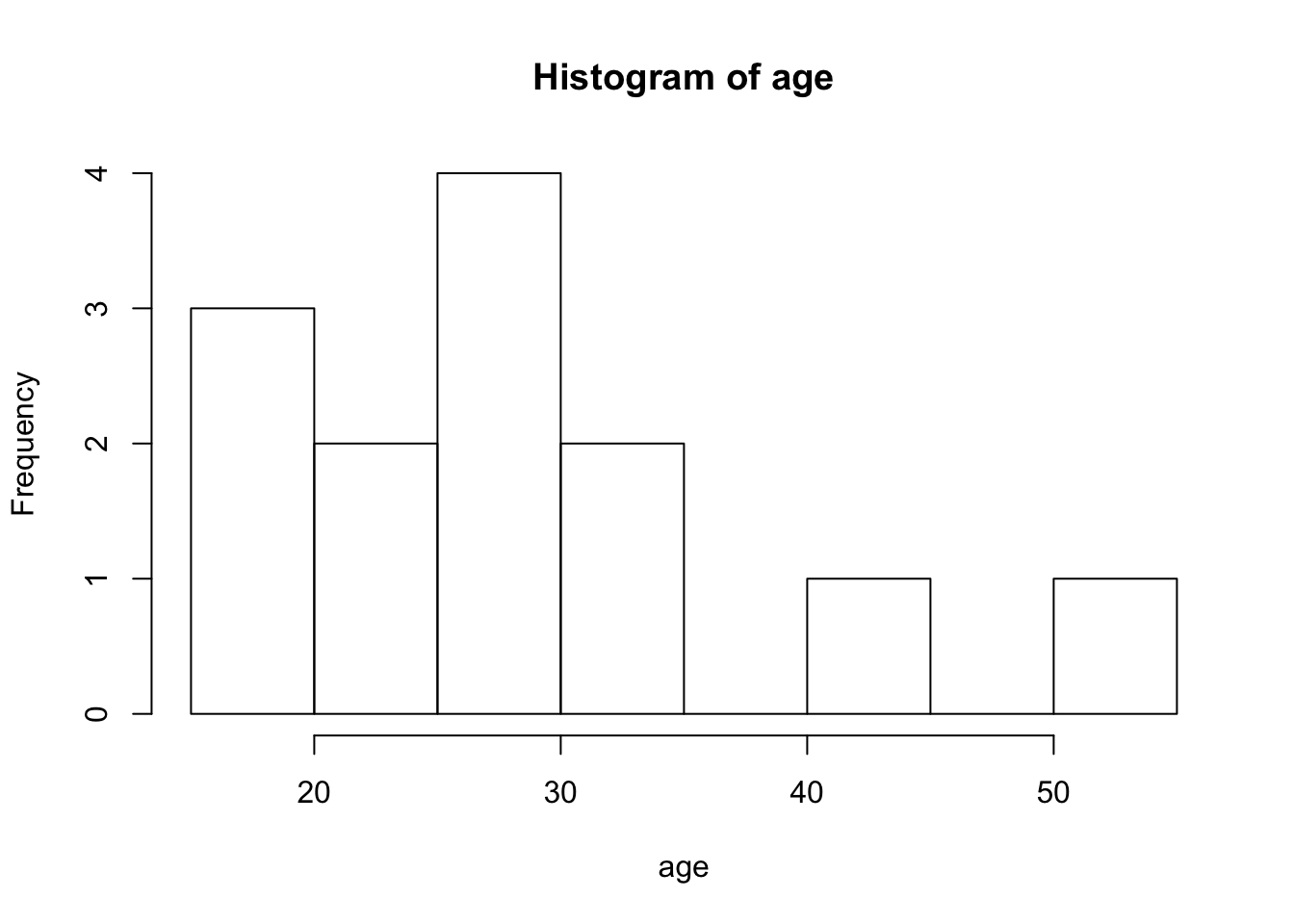 age <- c(34, 22, 26, 25, 43,19, 19, 20, 33, 27, 27, 26, 54)