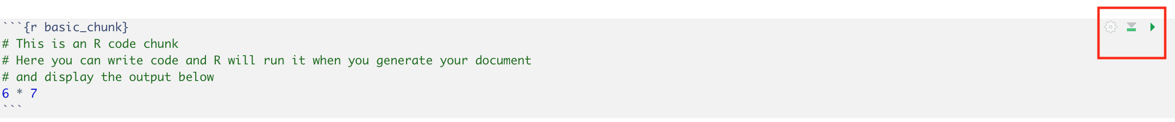 For now, you can stick to simple code chunks without worrying too much about adding extra options. For future reference, the specifications below could be added to your code chunks.