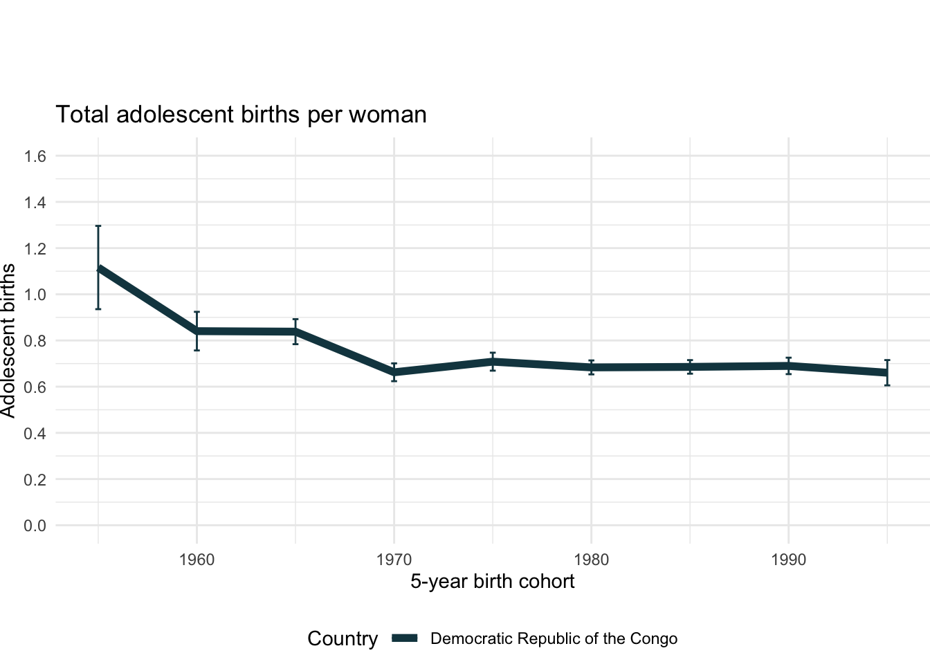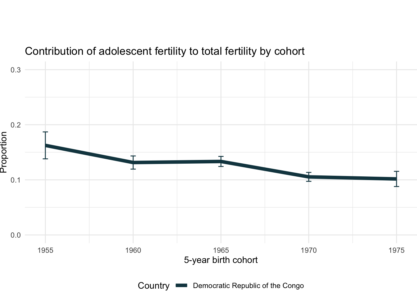 2.12.7 Contribution of adolescent fertility to total fertility by cohort