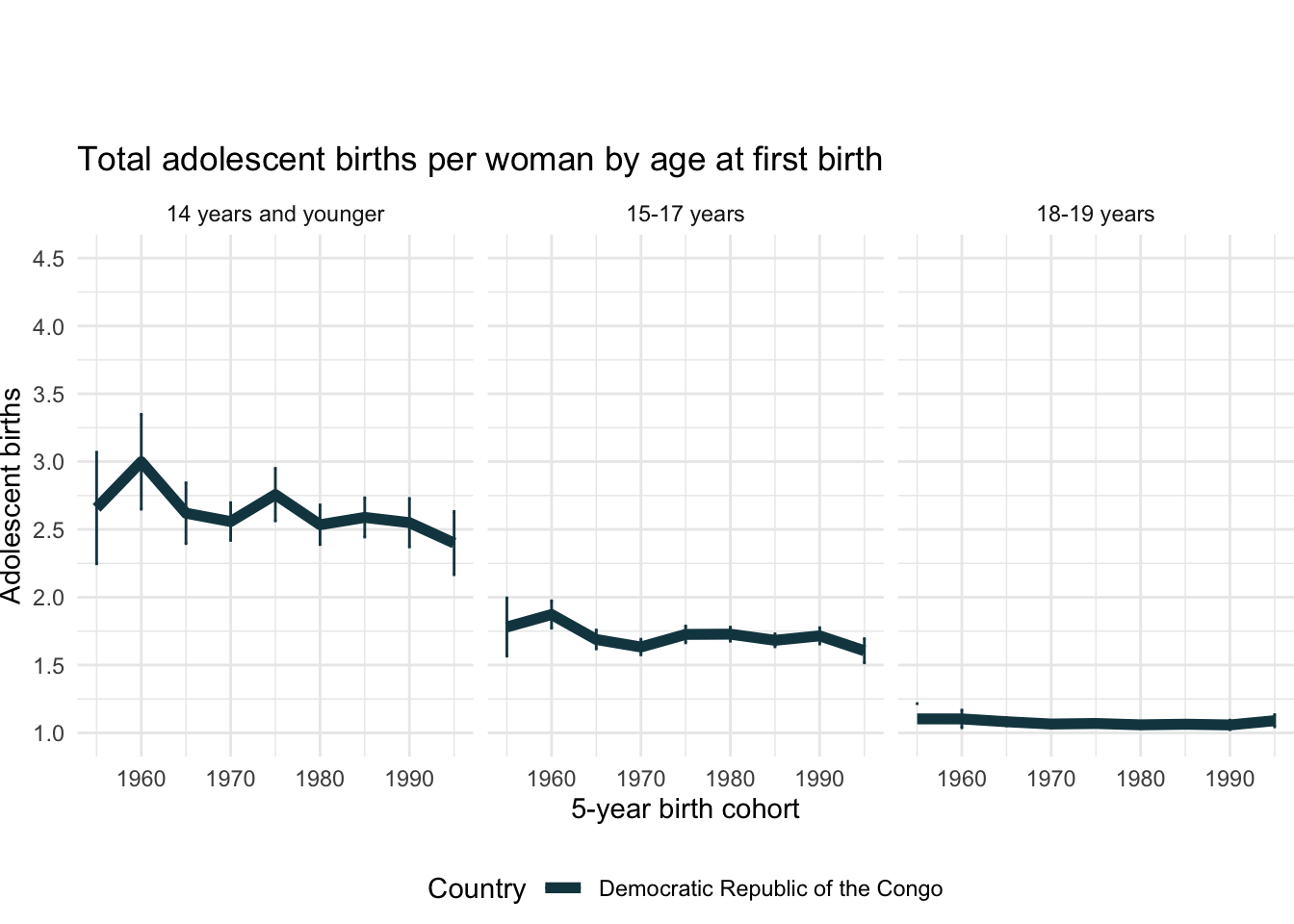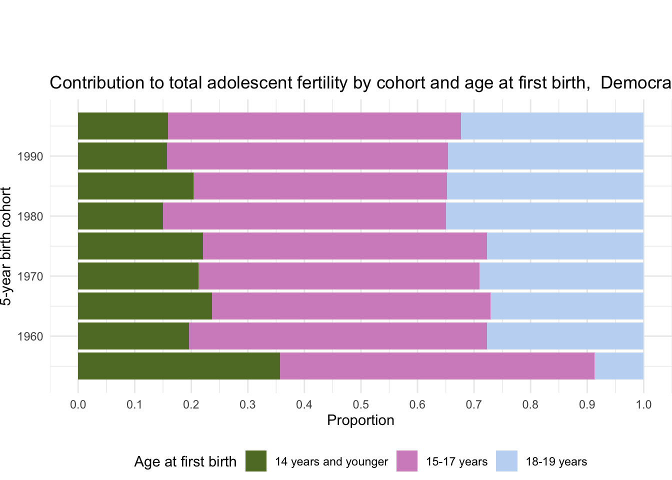 2.12.4 Contribution to total adolescent fertility by age at first birth (all cohorts)