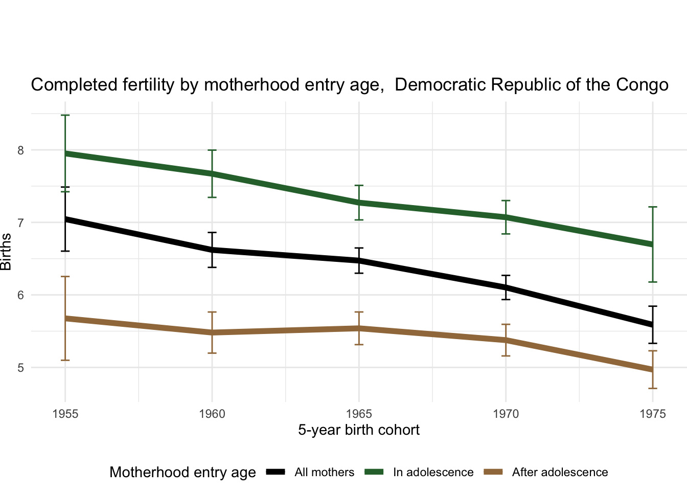 2.12.5 Completed fertility by motherhood entry age