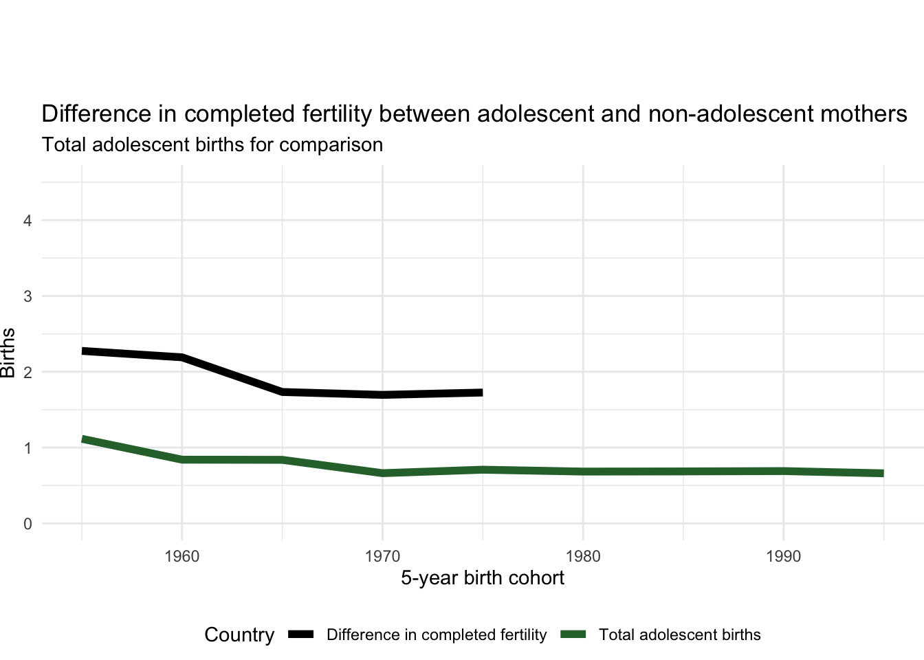 2.12.6 Difference in completed fertility between adolescent and non-adolescent mothers
