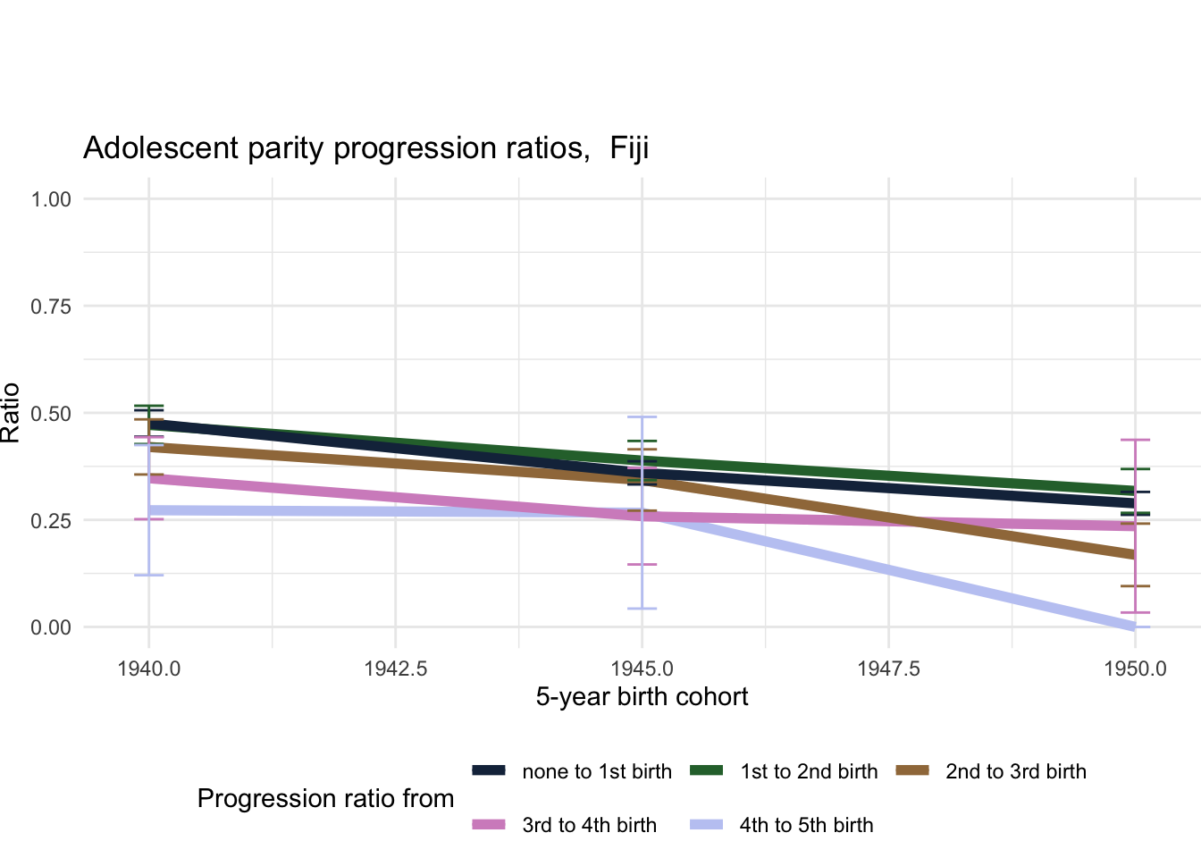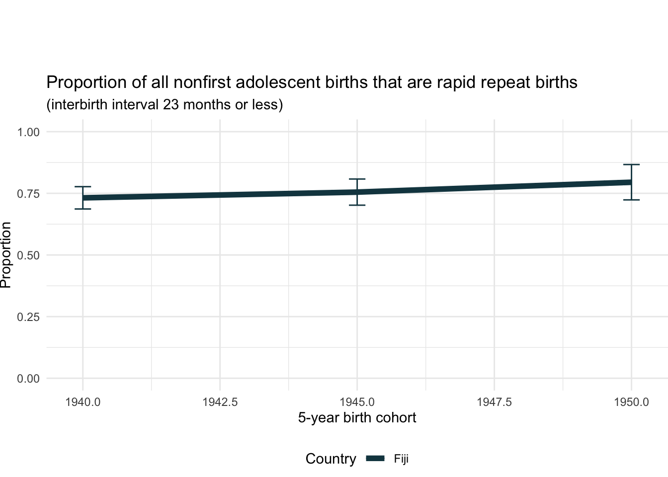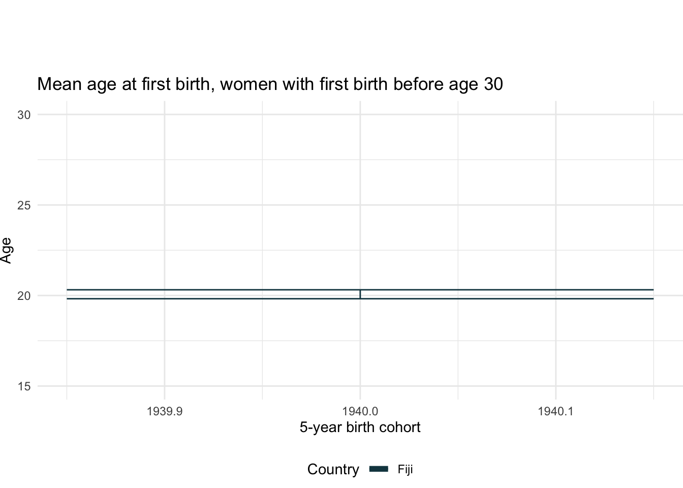 Measure not possible because not using cohorts that are 40 yrs old at time of survey (WFS survey 1974 and start with year 1940 to align with earliest start date of other DHS surveys)