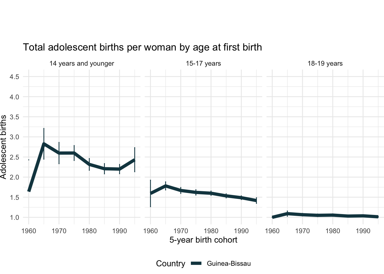 2.19.2 Total adolescent births by age at first birth