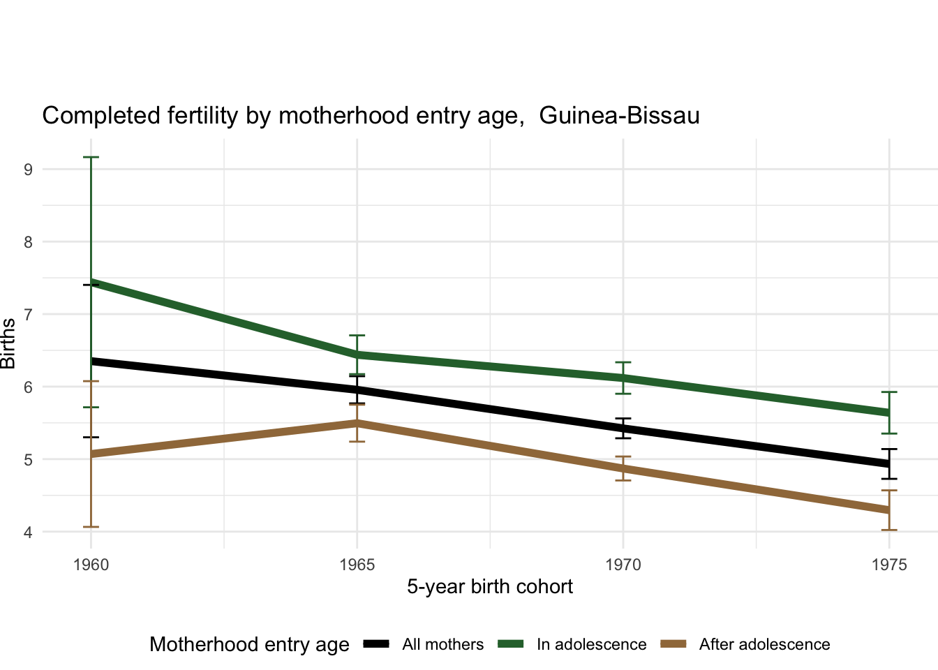 2.19.5 Completed fertility by motherhood entry age