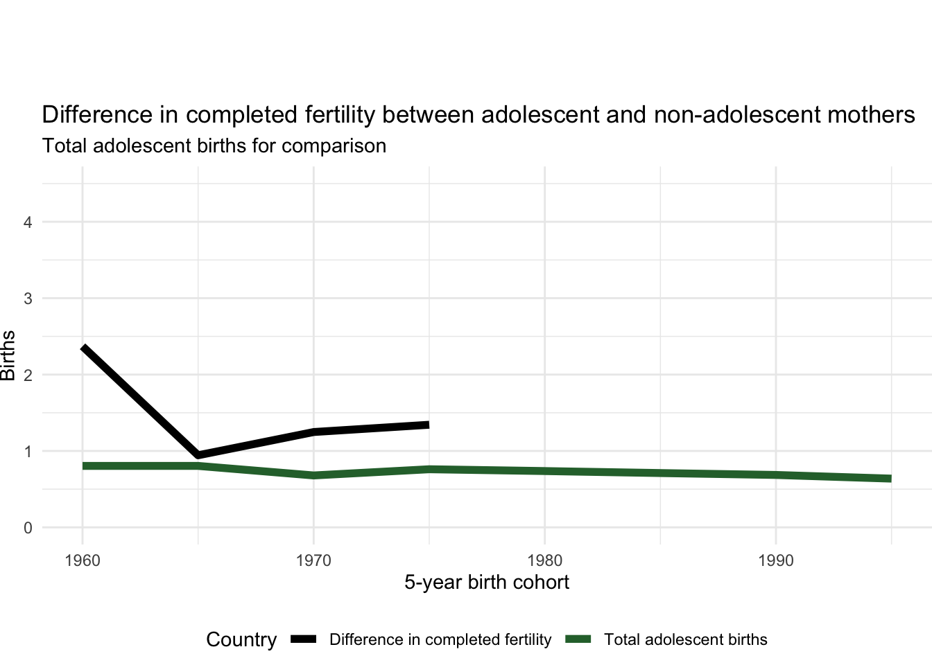 2.19.6 Difference in completed fertility between adolescent and non-adolescent mothers