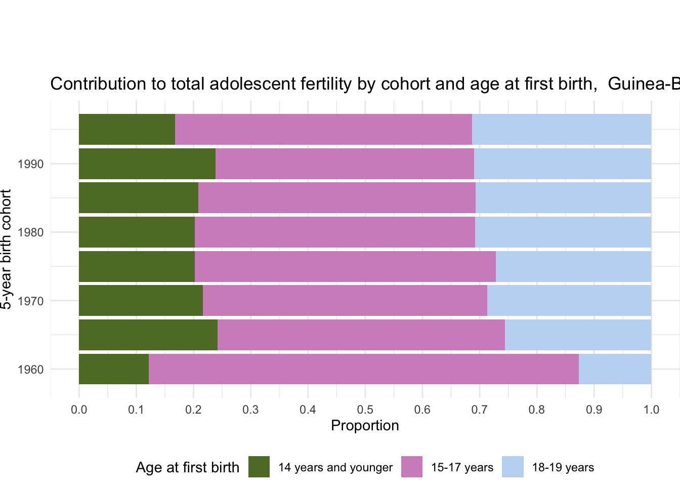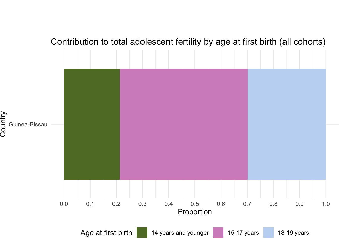 2.19.4 Contribution to total adolescent fertility by age at first birth (all cohorts)