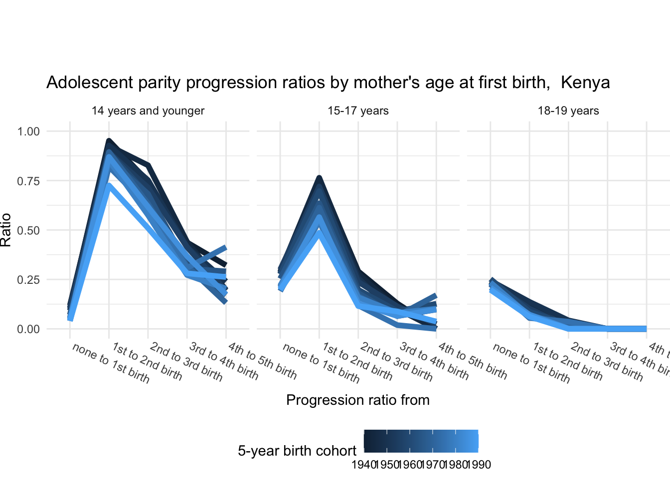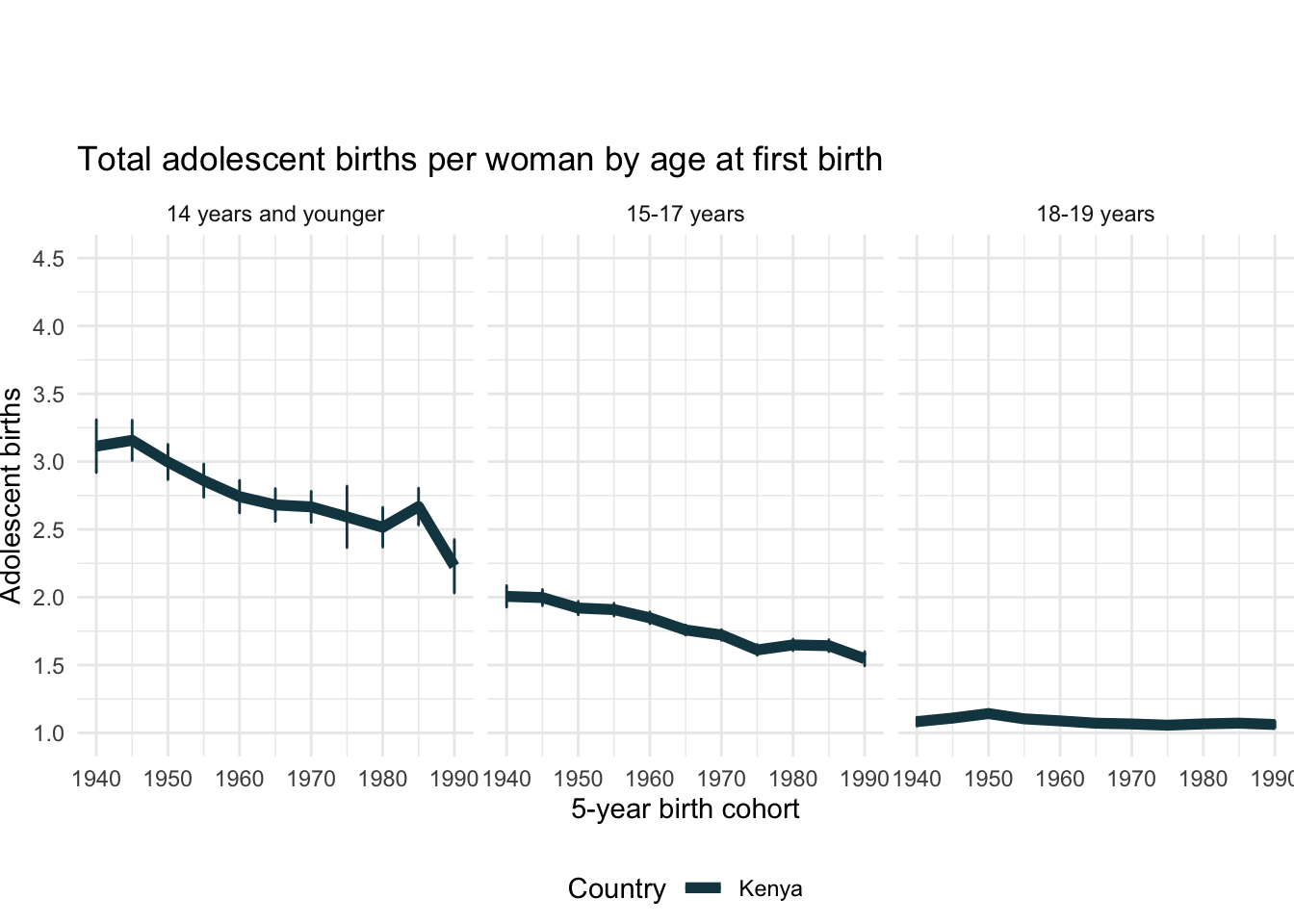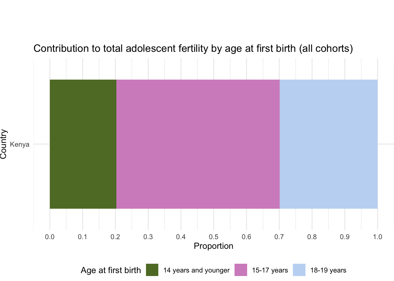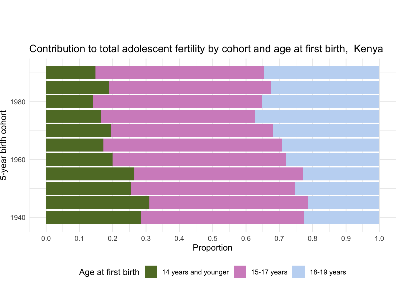 2.20.4 Contribution to total adolescent fertility by age at first birth (all cohorts)