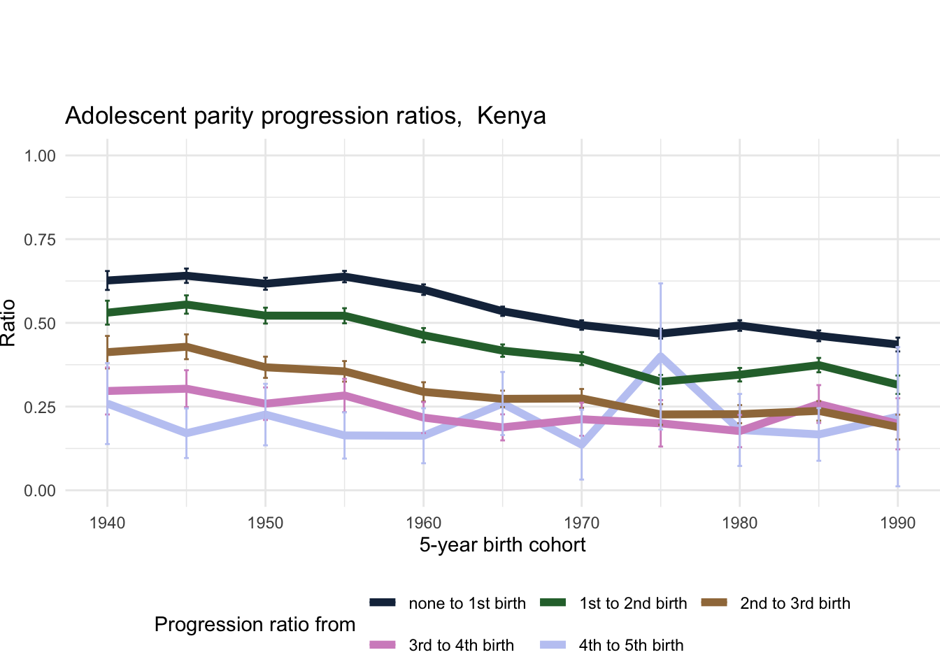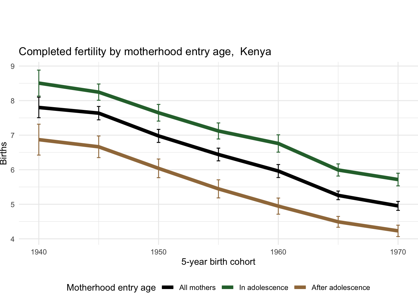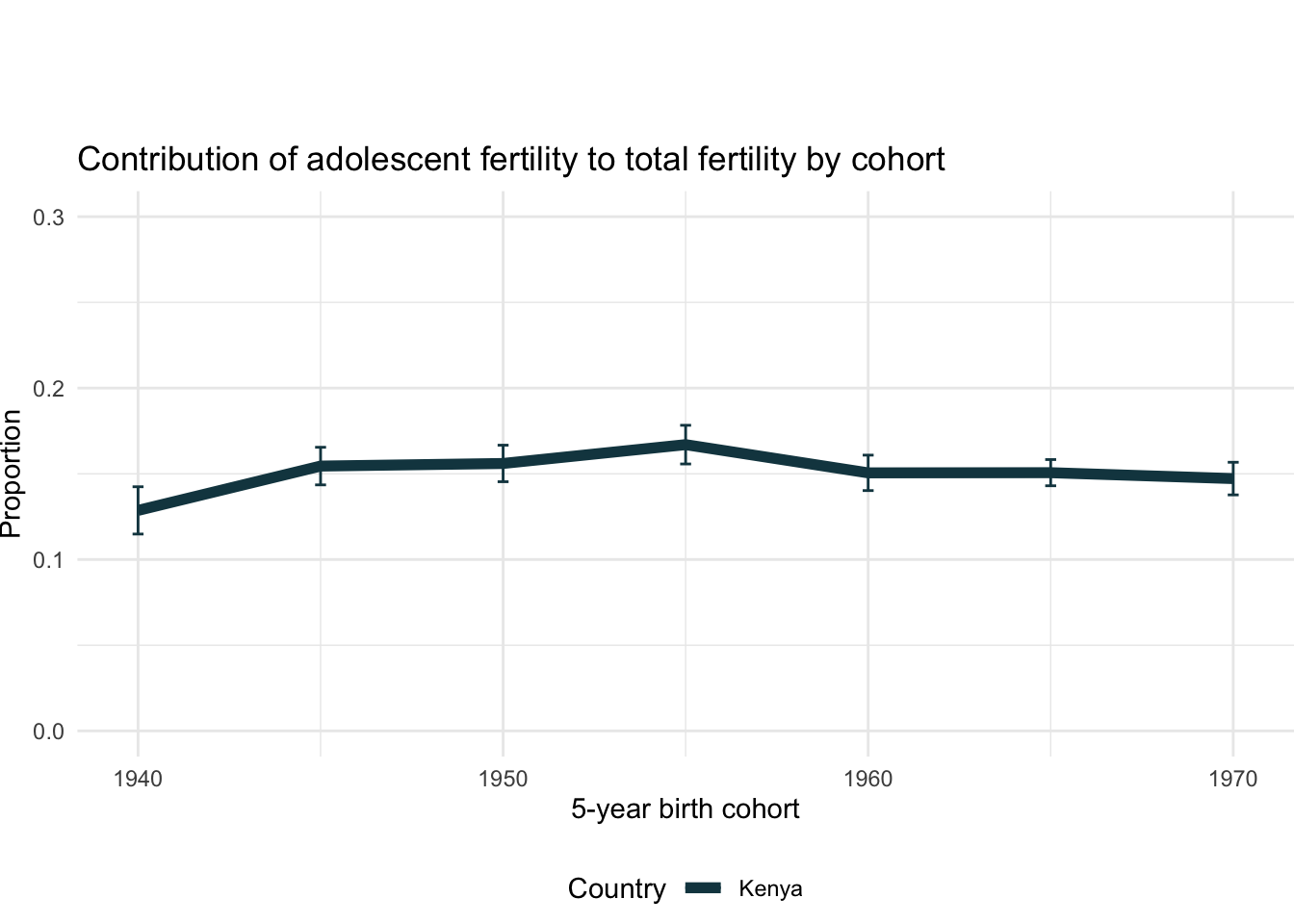 2.20.7 Contribution of adolescent fertility to total fertility by cohort