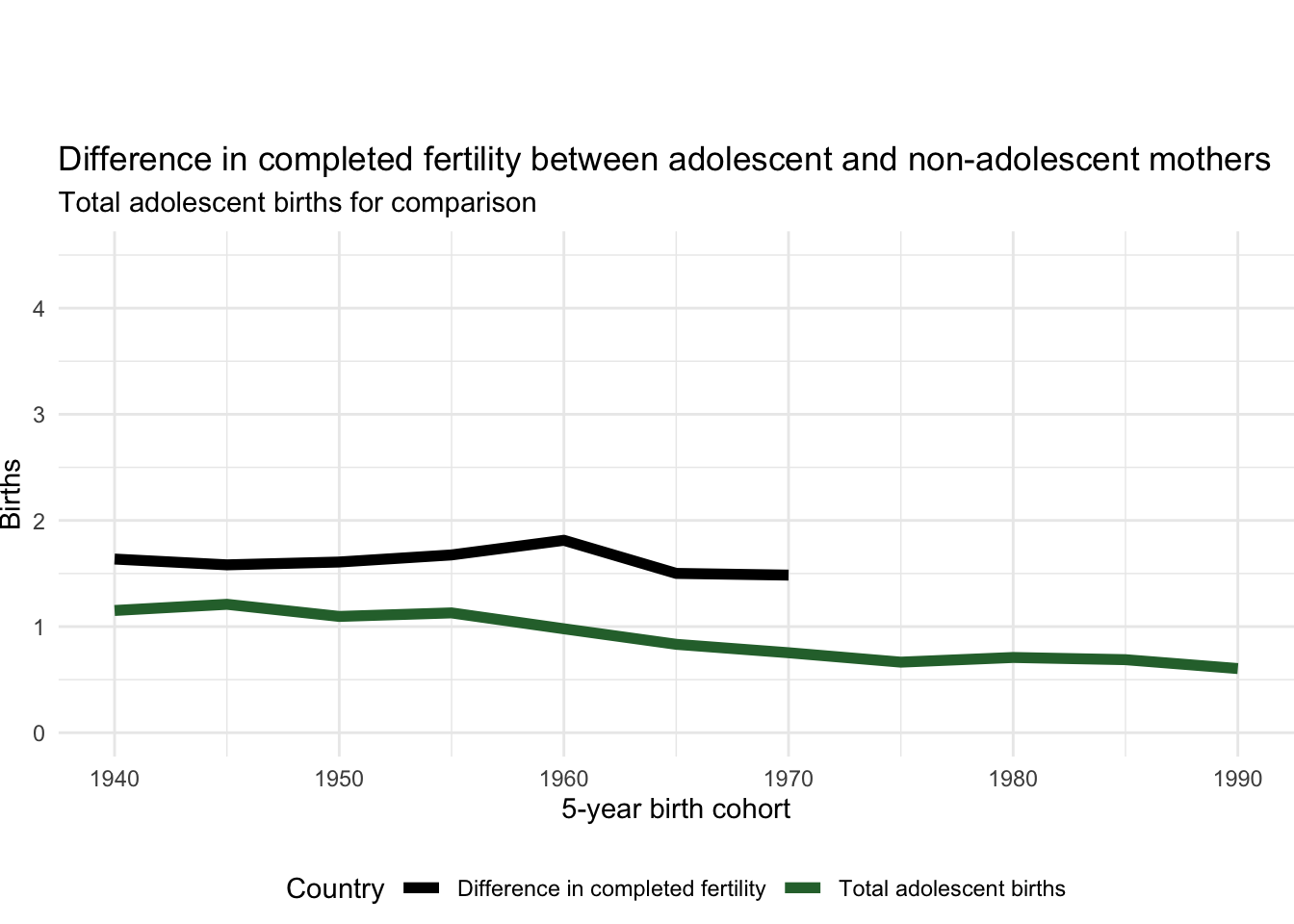 2.20.6 Difference in completed fertility between adolescent and non-adolescent mothers