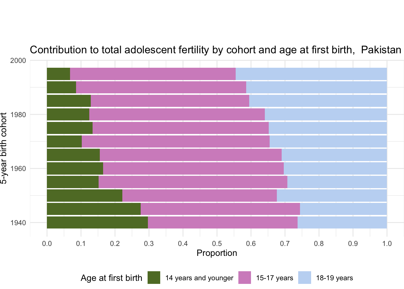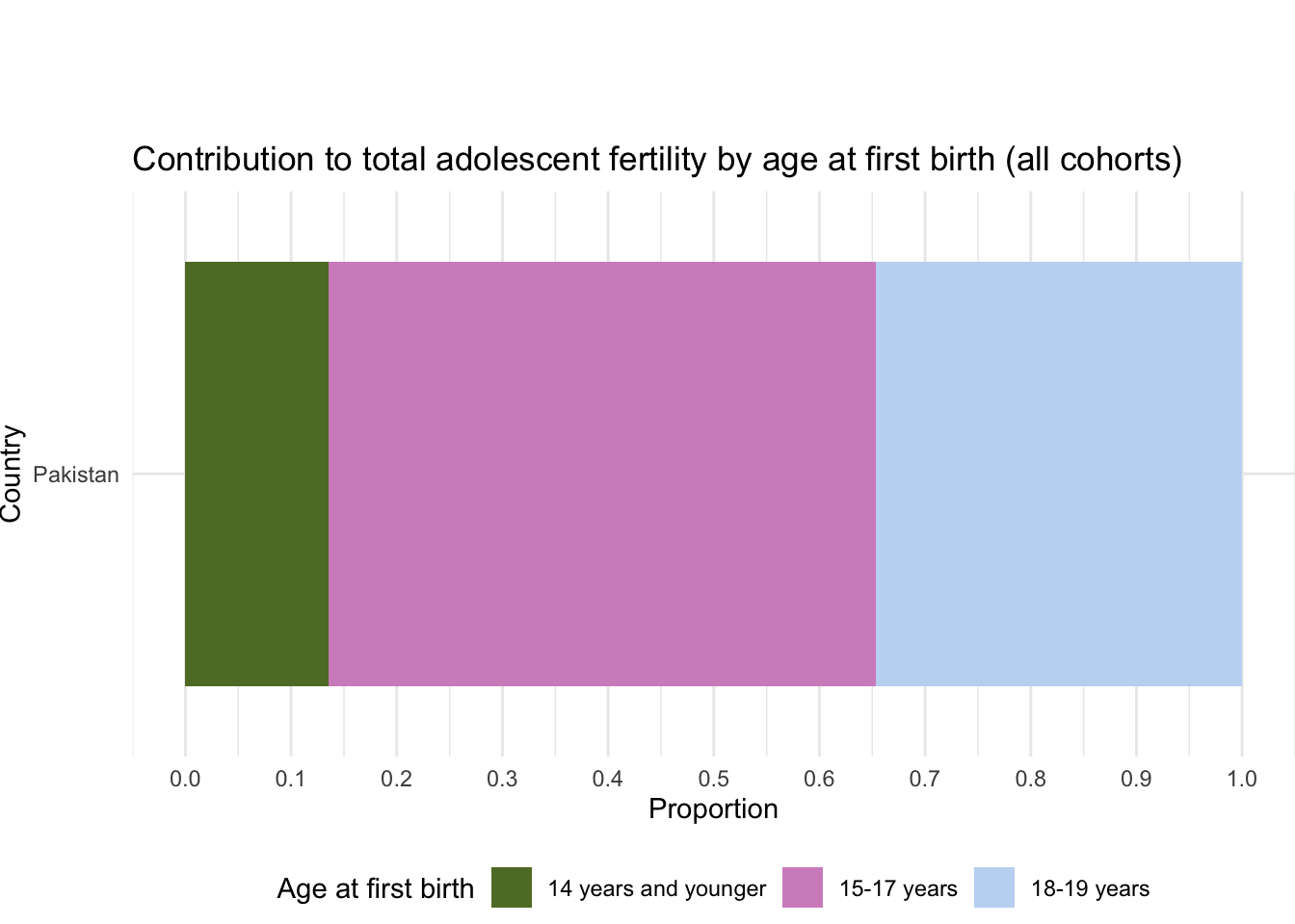 4.8.4 Contribution to total adolescent fertility by age at first birth (all cohorts)