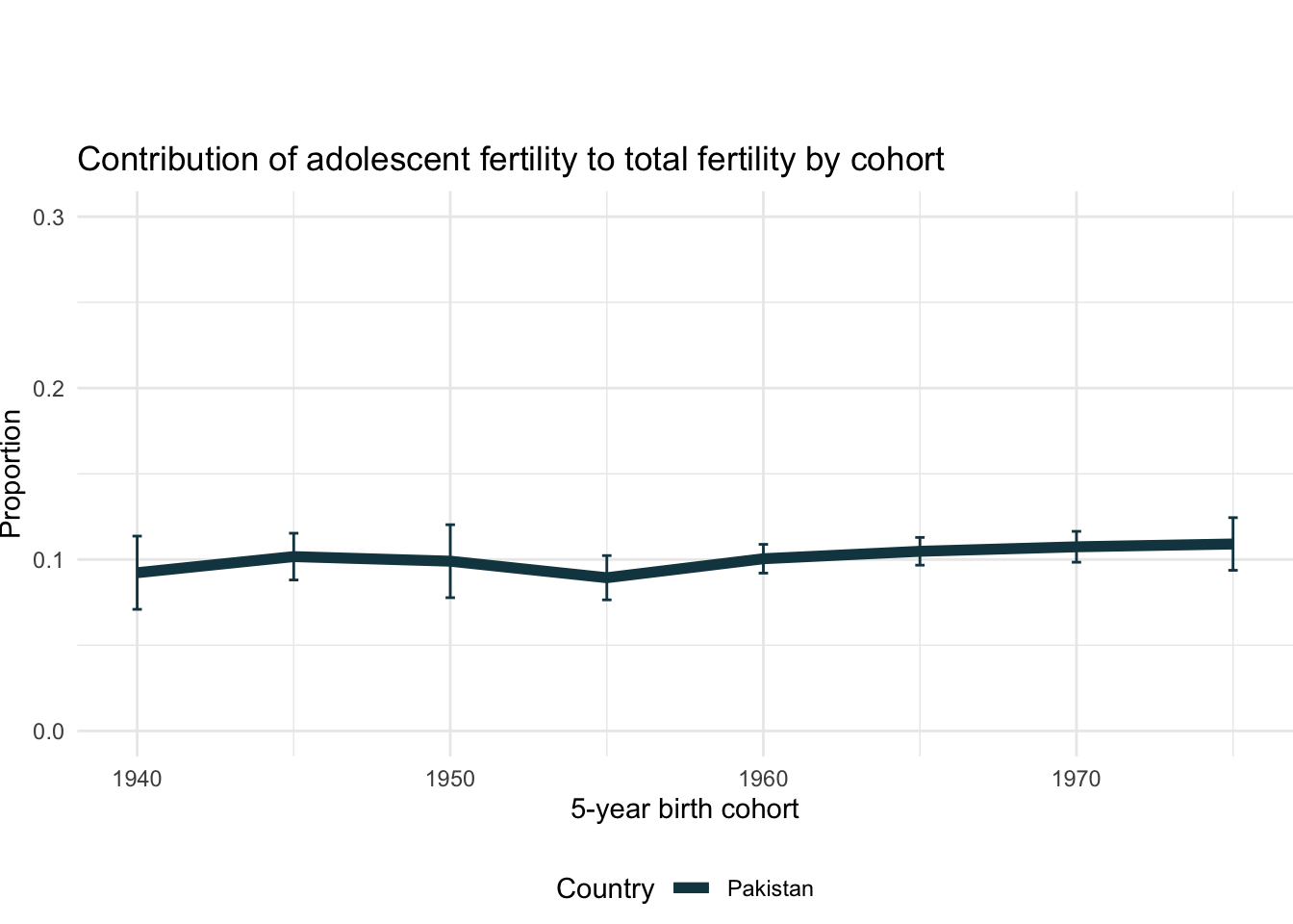 4.8.7 Contribution of adolescent fertility to total fertility by cohort