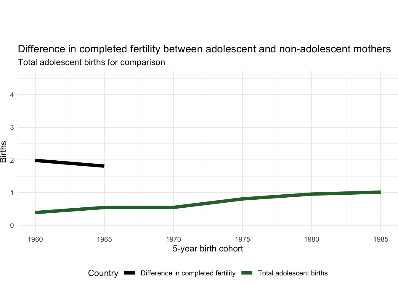2.37.6 Difference in completed fertility between adolescent and non-adolescent mothers