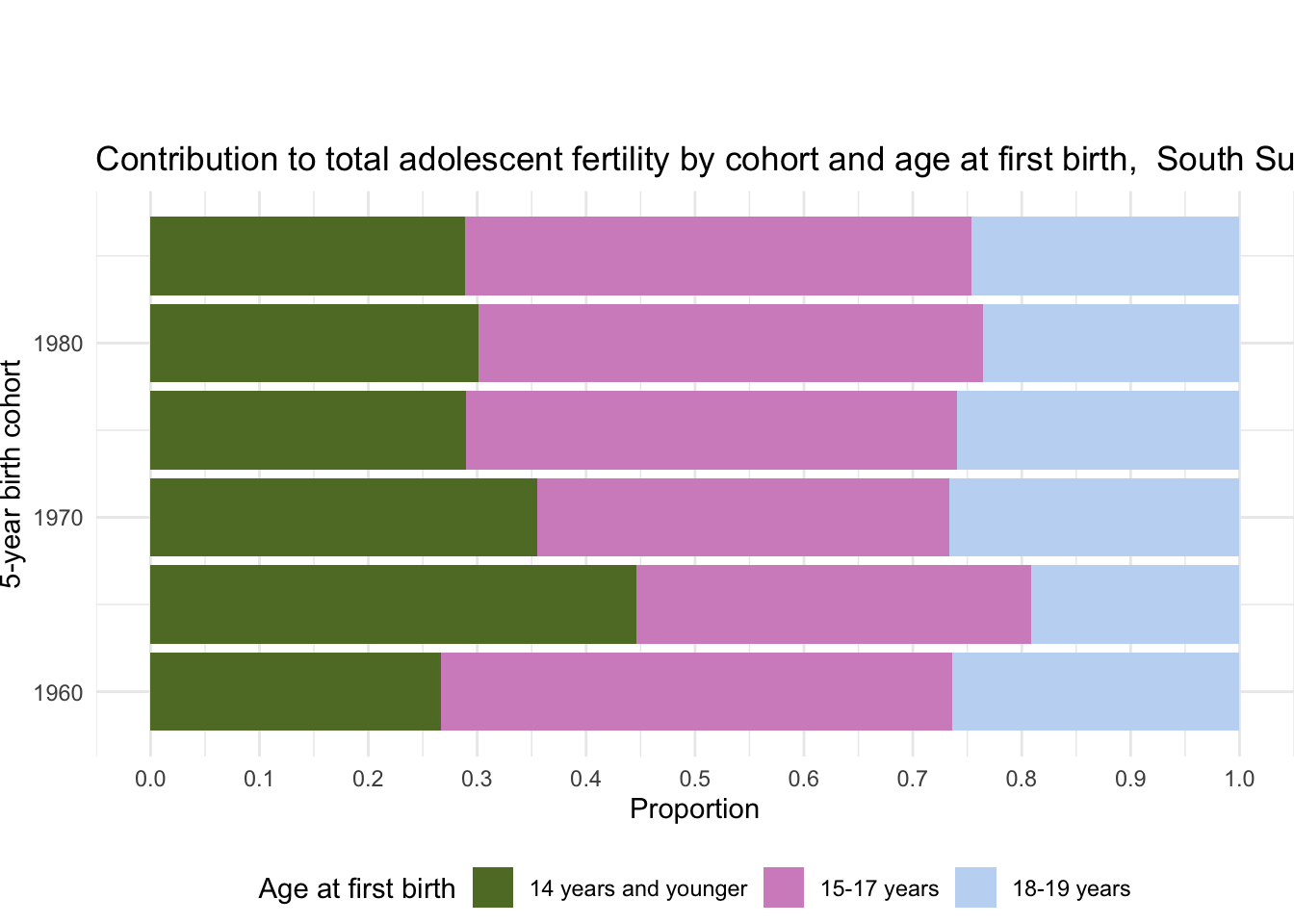 2.37.4 Contribution to total adolescent fertility by age at first birth (all cohorts)