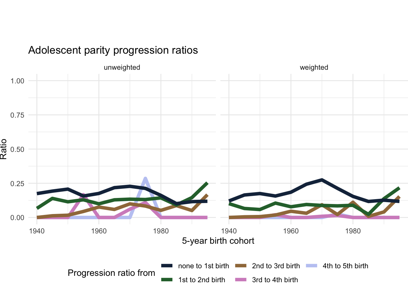 8.11.10 Adolescent parity progression ratios by age (all cohorts)